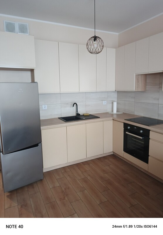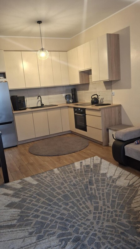 - salon z aneksem kuchennym w zabudowie ze sprzętami AGD na gwarancji oraz wyjściem na duży balkon,