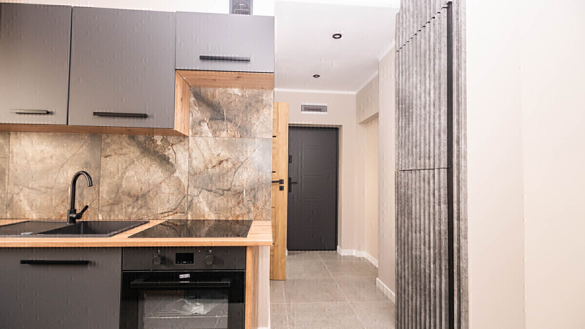 Mieszkanie po generalnym remoncie, nowoczesna kuchnia wraz ze sprzętem AGD (w tym zmywarka, płyta indukcyjna, piekarnik, lodówka), w łazience kabina prysznicowa oraz pralka.