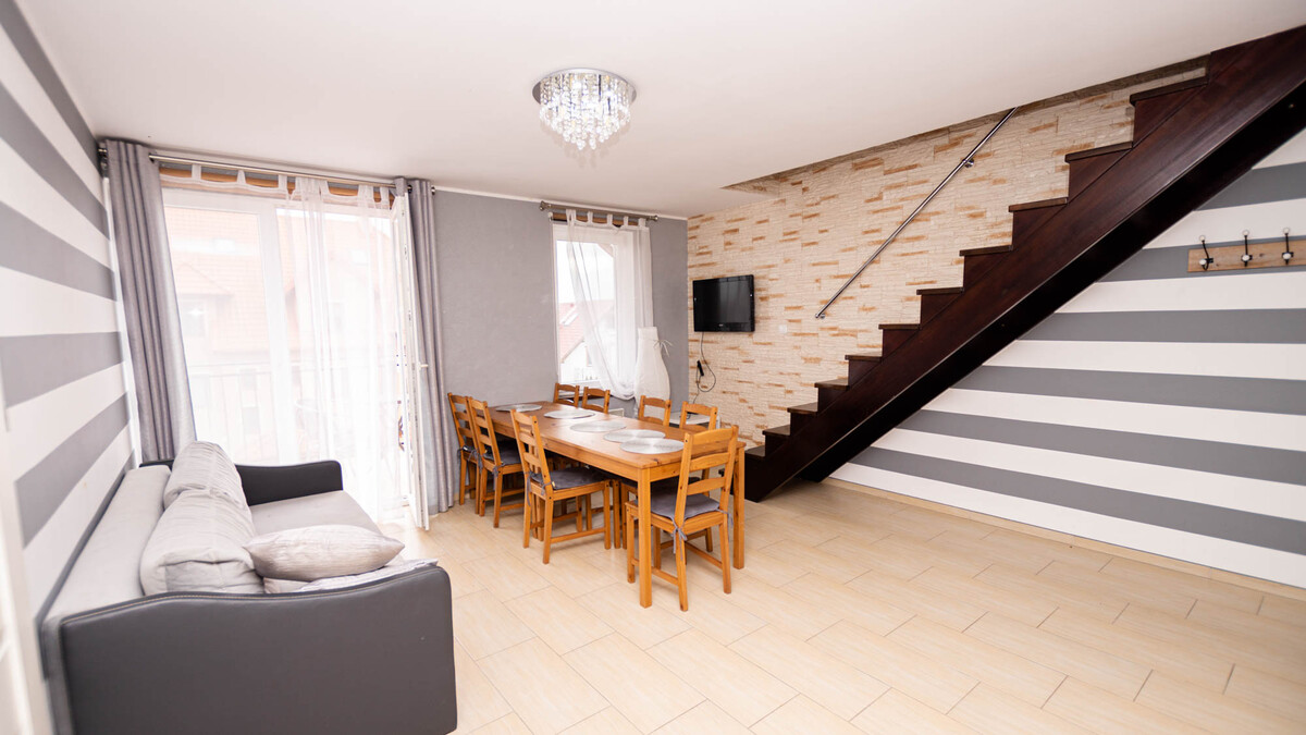 Polecamy do sprzedaży dwupoziomowy apartament o pow. 55,86 m2 znajdujący się na drugim piętrze przy ul. Rybackiej w Krynicy Morskiej.