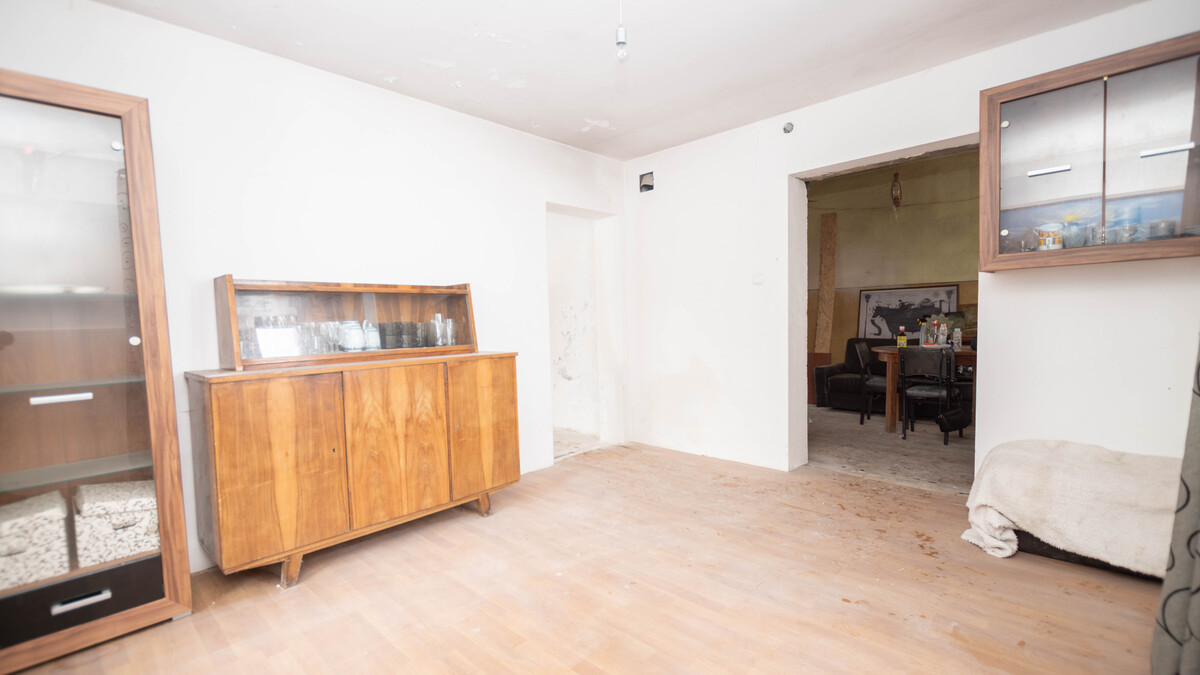 Lokal składa się z dwóch pokoi (przearanżowane na trzy pokoje), kuchni, łazienki z wc oraz ganku. Lokal do remontu. Okna PCV. Mieszkanie posiada niezależne wejście, co zapewnia poczucie domu jednorodzinnego. Część mieszkania podpiwniczona.