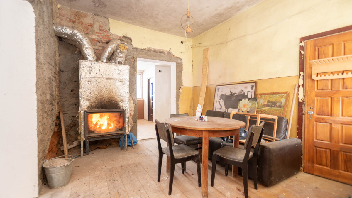 Ogrzewanie za pomocą kominka /piec typu koza/ z rozprowadzeniem ciepła po pomieszczeniach. Ciepła woda z bojlera elektrycznego. Trzystronna wystawa okien. Podłoga w pokojach drewniana.