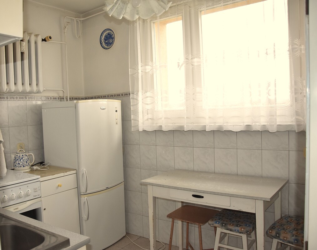 duże pokoje: dzienny o pow.19,8m2 z balkonem od strony zachodniej; sypialnia od wschodu o pow.11,5m2,na podłogach parkiet w dobrym stanie;