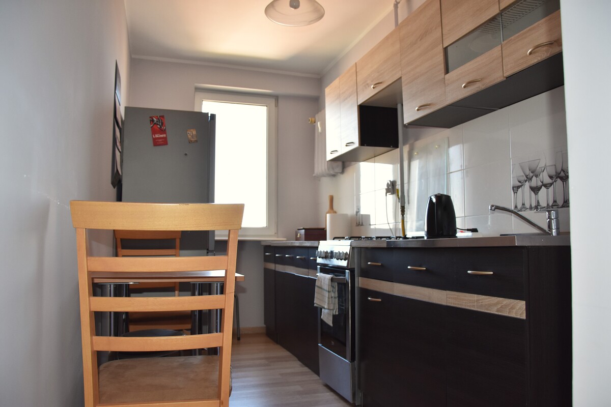 wygodna, widna kuchnia;