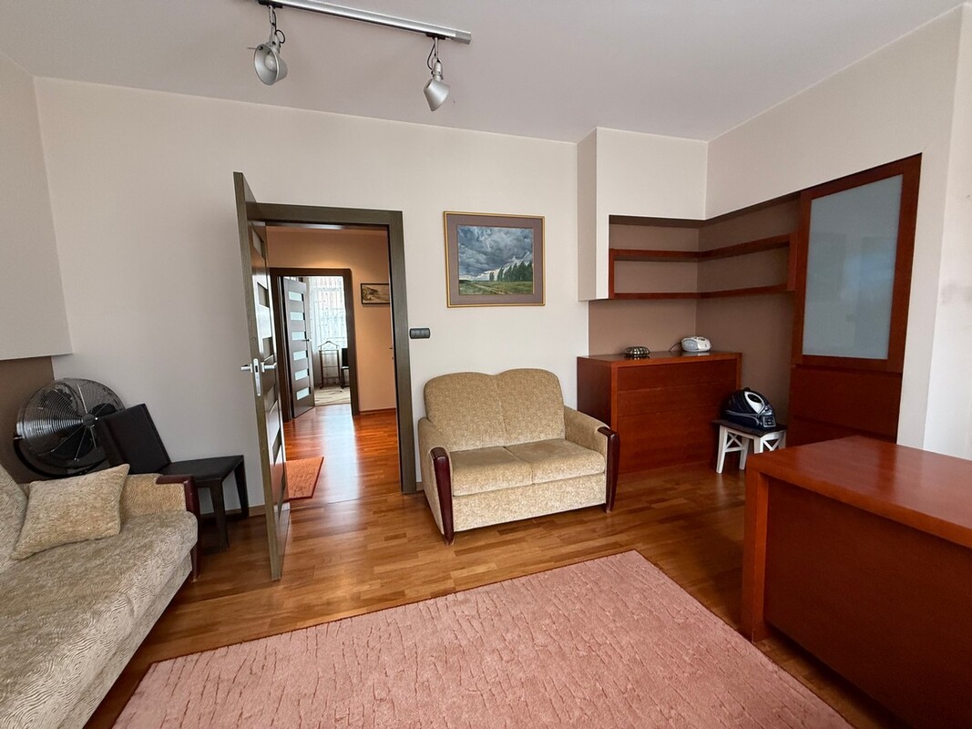 Salon /22,60 m2/, pokój /21,80 m2/ z przeznaczeniem gościnnym lub biurowym, sypialnia z wyjściem na taras /17,90 m2/, oddzielna, przestronna kuchnia /10,50 m2/ w zabudowie i sprzętem AGD, łazienka z WC /4,80 m2/ w której jest wanna i oddzielnie prysznic, przedpokój z pojemnymi szafami w zabudowie.