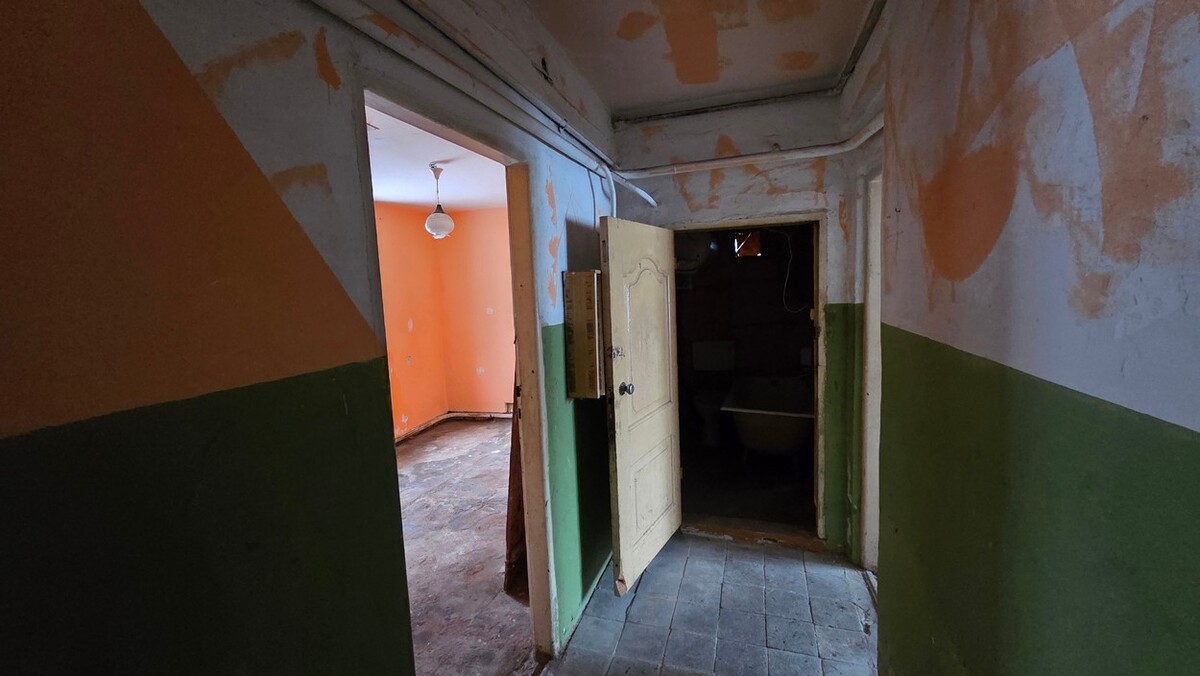 Mieszkanie do remontu, 2 pokoje, kuchnia, łazienka z WC, przedpokój, pomieszczenie gospodarcze na zewnątrz oraz działka ogrodzona z możliwością zabudowy o powierzchni: 458 m2.