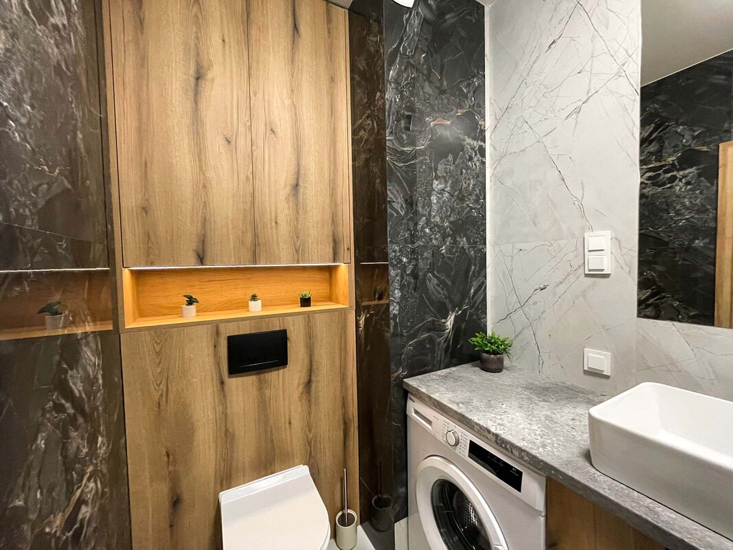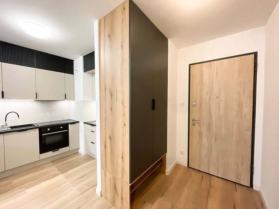 Przedmiotem oferty jest atrakcyjne mieszkanie na wynajem, zlokalizowane na parterze nowoczesnego apartamentowca z reprezentacyjną recepcją. Budynek wyróżnia się elegancką architekturą oraz wysokim standardem części wspólnych. Apartament został urządzony w nowoczesnym stylu, z wykorzystaniem wysokiej jakości materiałów oraz nowoczesnych zabudów meblowych wykonanych na wymiar. Wnętrze jest w pełni wyposażone i gotowe do zamieszkania, zarówno w sprzęt AGD, jak i funkcjonalne umeblowanie, zapewniające komfort codziennego użytkowania. Do dyspozycji najemcy pozostaje również miejsce postojowe w hali garażowej, co stanowi istotny atut tej oferty.