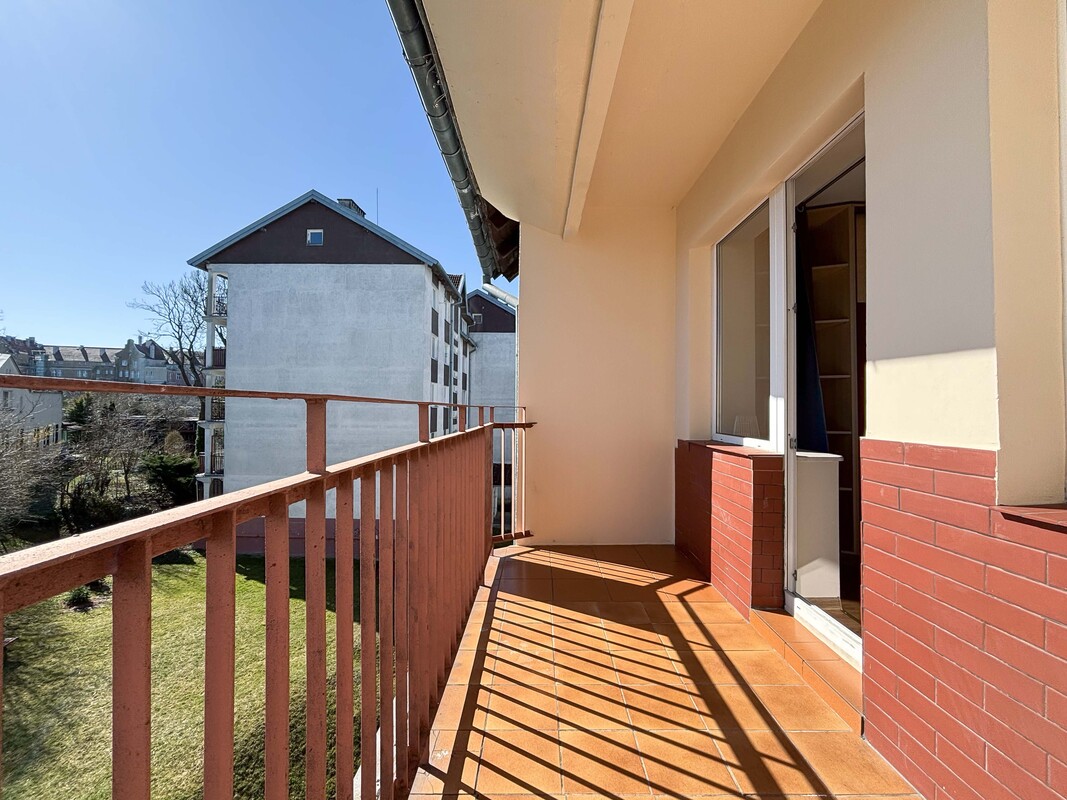- przestronnego salonu z wyjściem na duży balkon z widokiem na zieleń,