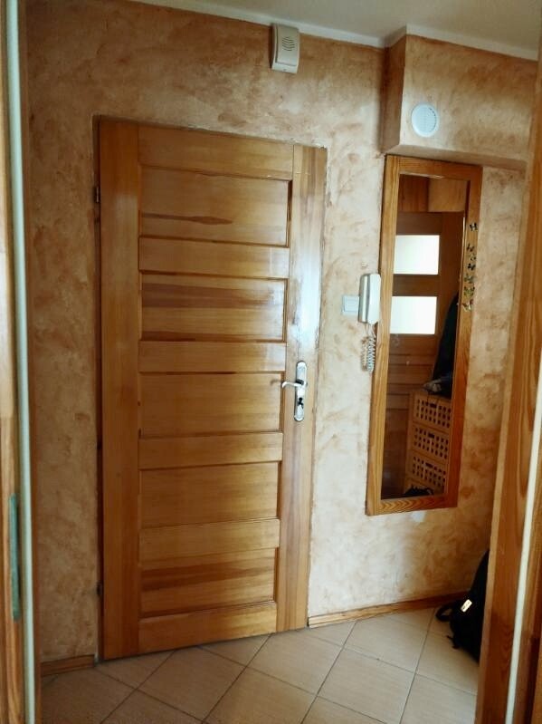 Lokal o powierzchni 38 m² znajduje się na II piętrze i składa się z pokoju, kuchni, łazienki z WC oraz przedpokoju. Mieszkanie jest w pełni umeblowane – wyposażone w pralkę, lodówkę, mikrofalówkę i telewizor. W przedpokoju znajduje się szafa w zabudowie. Ogrzewanie centralne.