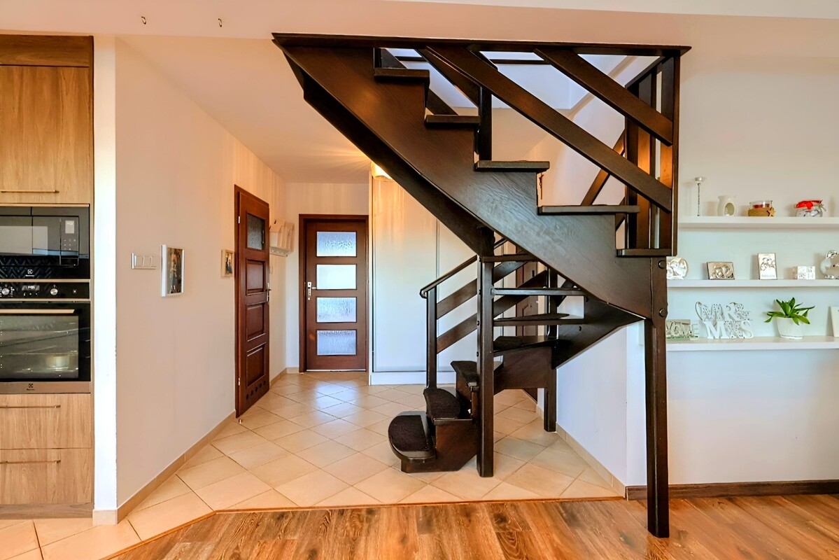 - Przedsionek z praktyczną zabudową – idealny na przechowywanie