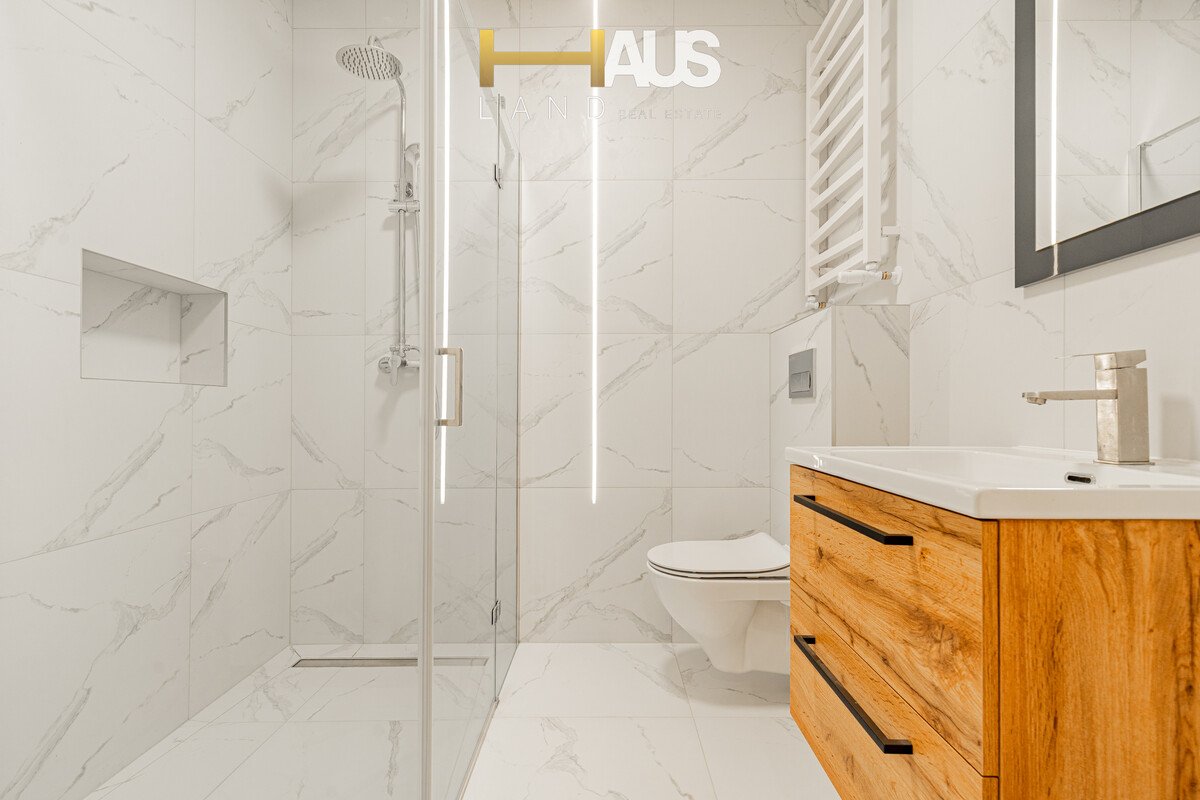- Nowoczesna, w pełni wykończona łazienka z prysznicem,