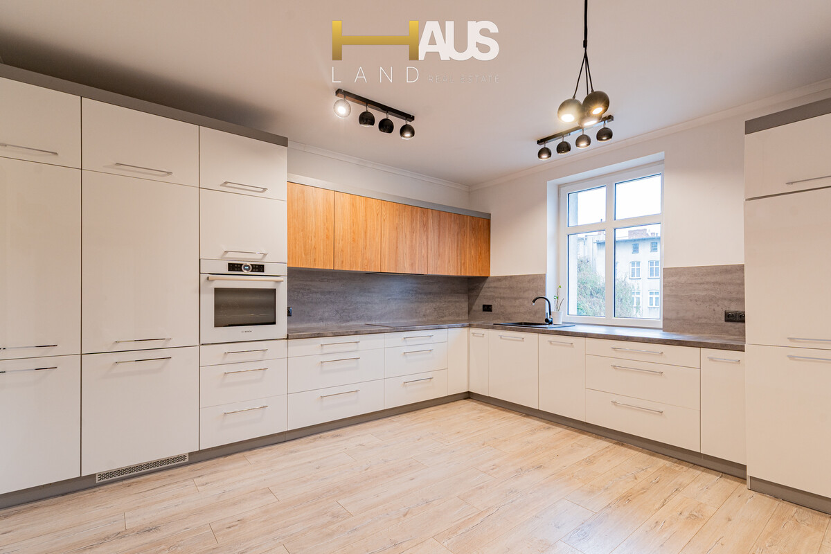 - Wyjątkowo przestronny układ pomieszczeń, w tym duży salon i osobna, ustawna kuchnia,