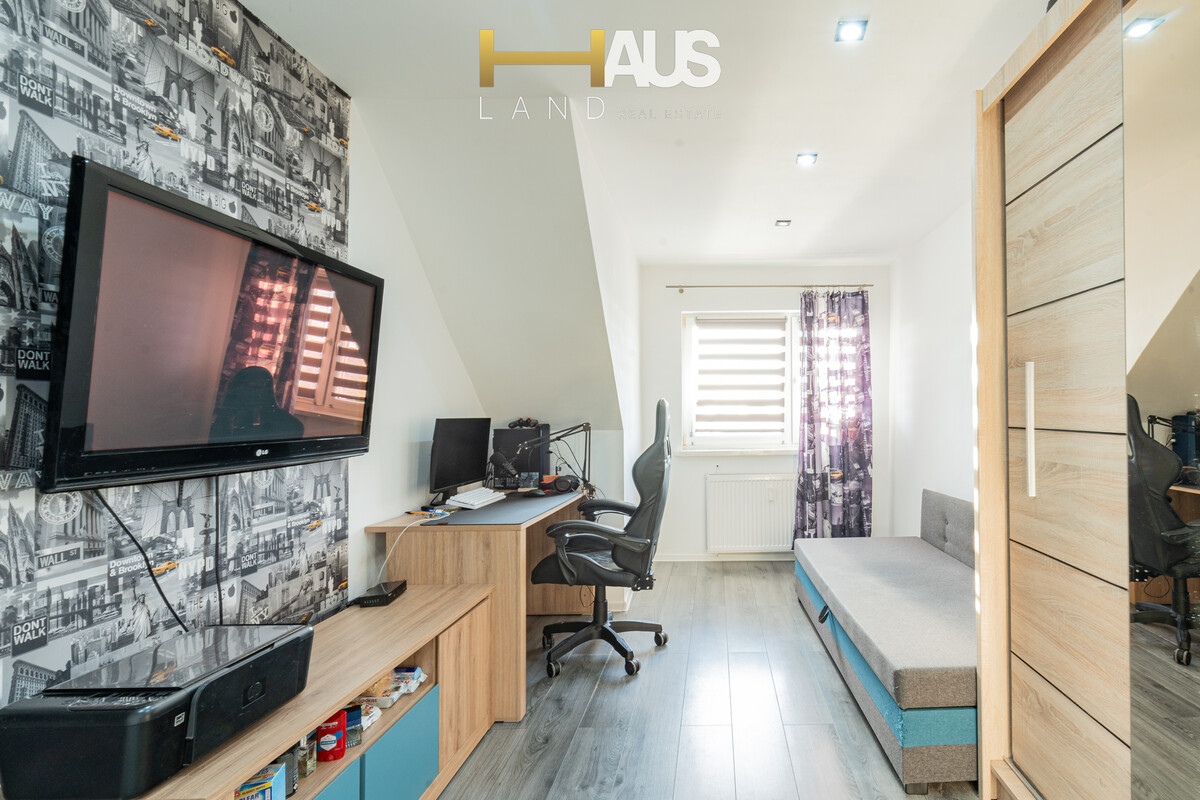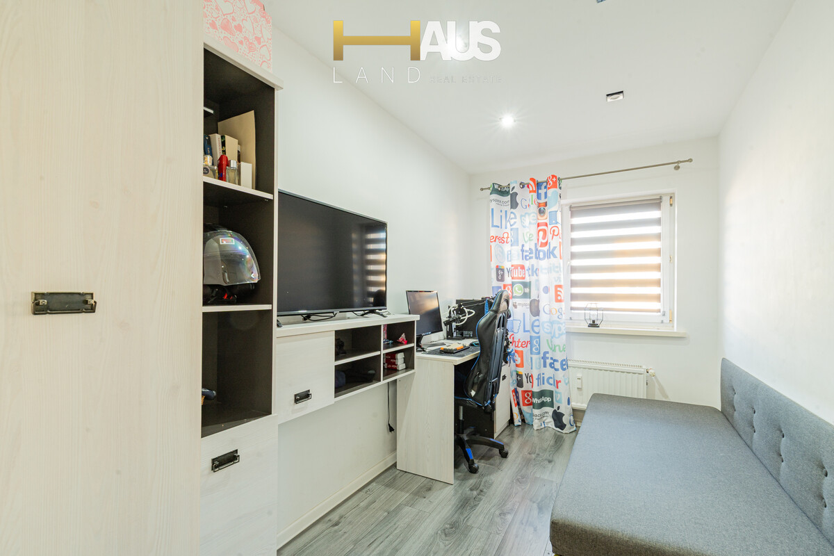 Układ mieszkania daje również możliwość wydzielenia czwartego pokoju, co stwarza dodatkowy potencjał dla większej rodziny lub osób, które potrzebują dodatkowej przestrzeni do pracy czy dla dzieci.