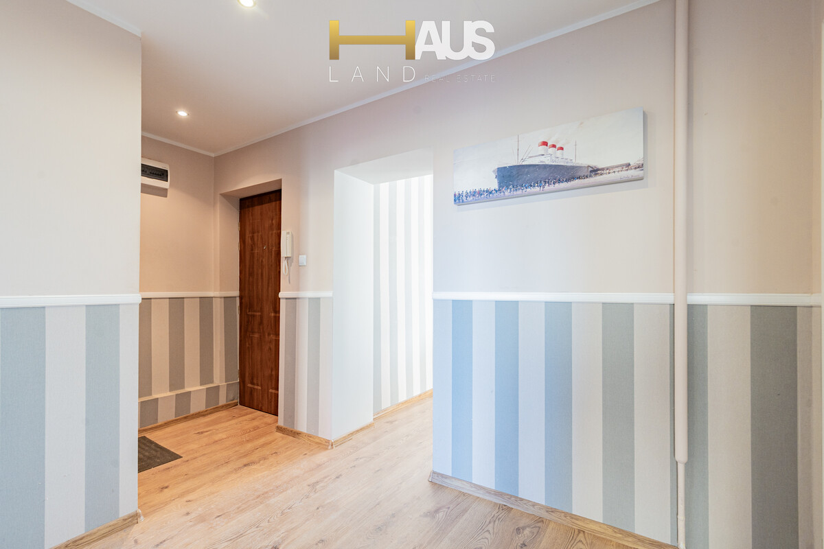 Sypialnia to przytulna, spokojna przestrzeń sprzyjająca wypoczynkowi, wyposażona w dużą i wygodną szafę, która zapewnia dużo miejsca do przechowywania, bez konieczności dodatkowego umeblowania. Praktyczna łazienka z prysznicem została zaprojektowana z myślą o codziennej wygodzie i funkcjonalności, a funkcjonalny korytarz z zabudową oferuje dodatkową przestrzeń na przechowywanie i pomaga utrzymać porządek w mieszkaniu. Całość jest spójna stylistycznie, jasna i bardzo zadbana.