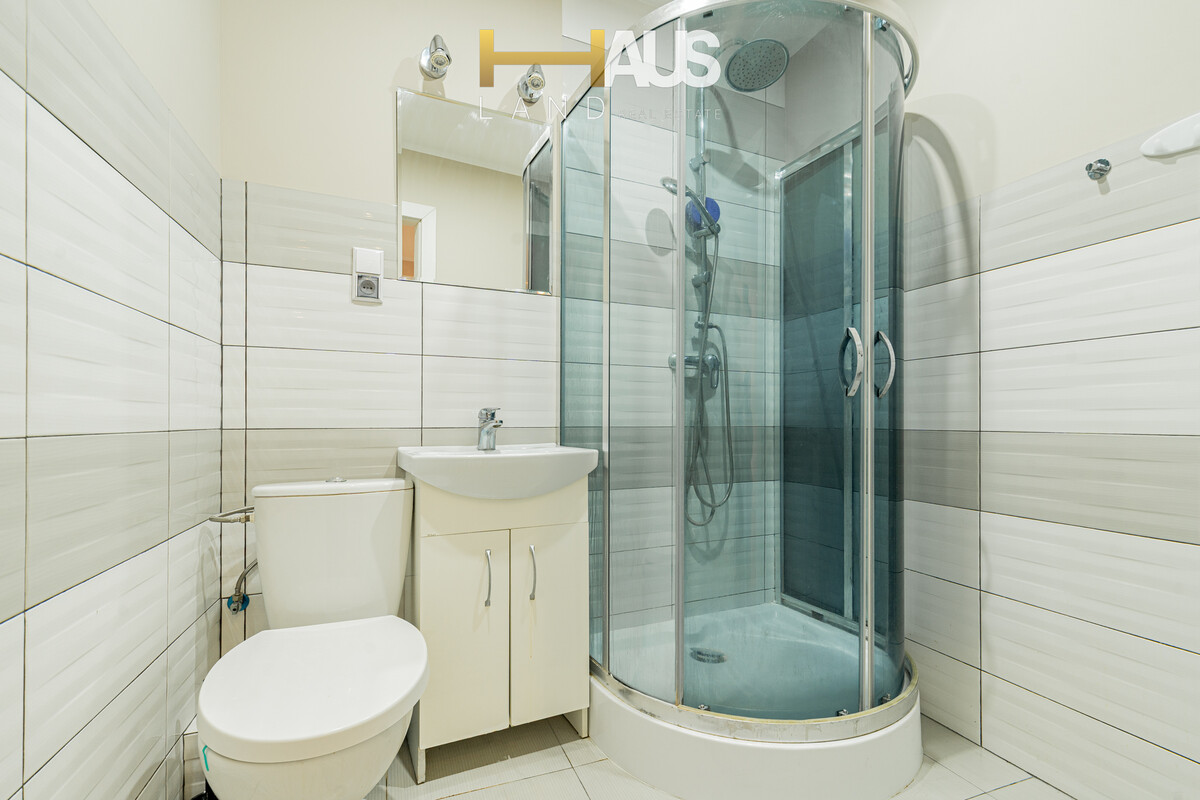 Sypialnia to przytulna, spokojna przestrzeń sprzyjająca wypoczynkowi, wyposażona w dużą i wygodną szafę, która zapewnia dużo miejsca do przechowywania, bez konieczności dodatkowego umeblowania. Praktyczna łazienka z prysznicem została zaprojektowana z myślą o codziennej wygodzie i funkcjonalności, a funkcjonalny korytarz z zabudową oferuje dodatkową przestrzeń na przechowywanie i pomaga utrzymać porządek w mieszkaniu. Całość jest spójna stylistycznie, jasna i bardzo zadbana.