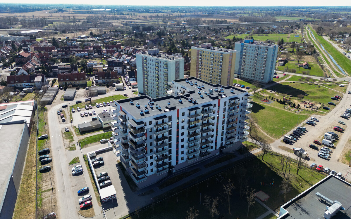 Nowy blok, zbudowany w nowoczesnej technologii posiadający osiem pięter. W budynku zamontowano cichobieżne windy. Do dyspozycji mieszkańców przy bloku parking, zabezpieczony szlabanem, a wejście do budynku zabezpieczone domofonem. Osiedle monitorowane.