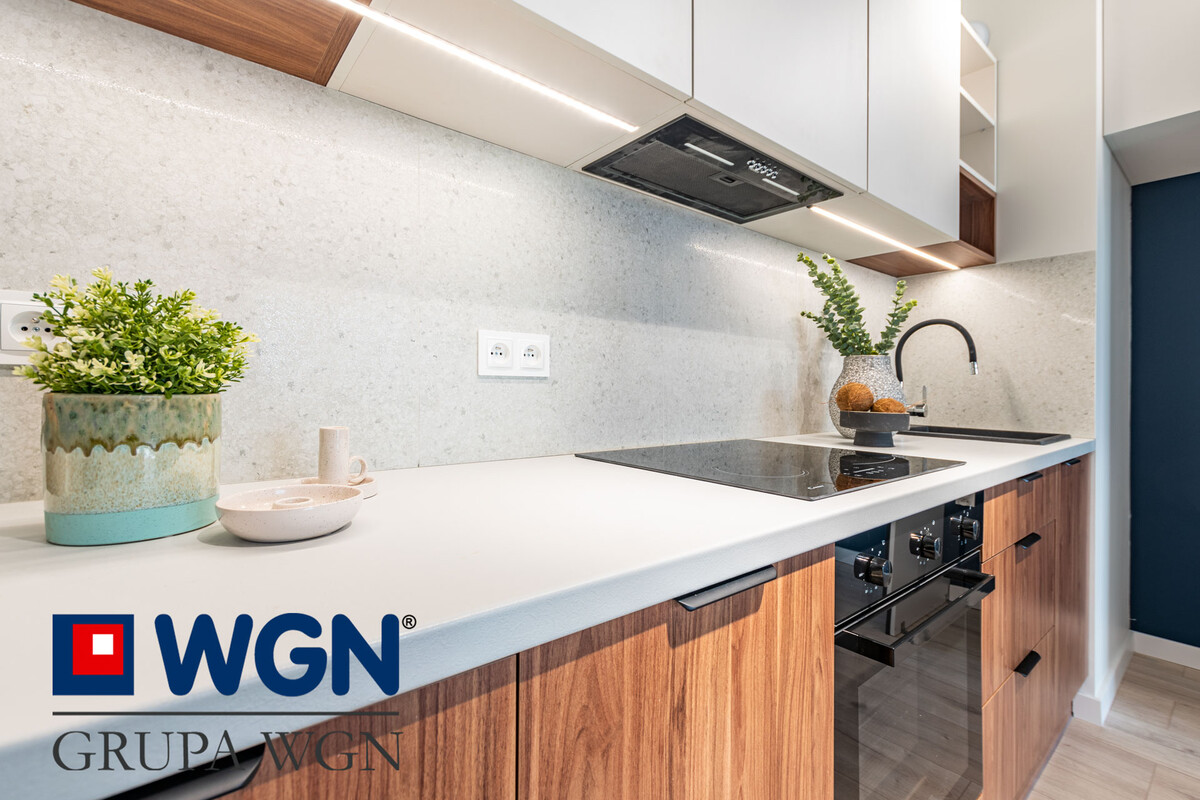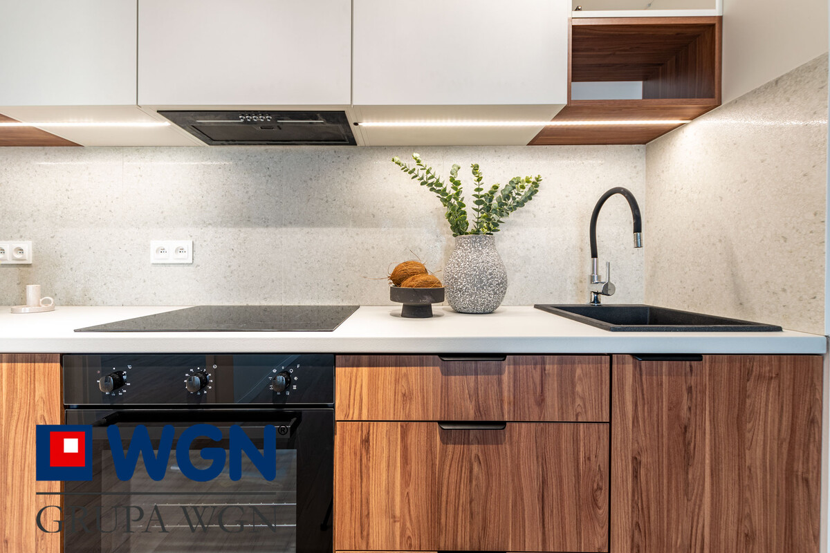 Kuchnia w mieszkaniu przygotowana na wymiar z wysokiej jakości materiałów, wyposażona w sprzęt AGD tj. piekarnik, płyta indukcyjna, zmywarka, lodówka i pralka w łazience. Do dyspozycji nowego lokatora są 2 szafy w zabudowie stałej, na przedpokoju oraz w mniejszym pokoju. Z salonu mamy możliwość wyjścia na duży balkon z którego rozpościera się piękny widok.
