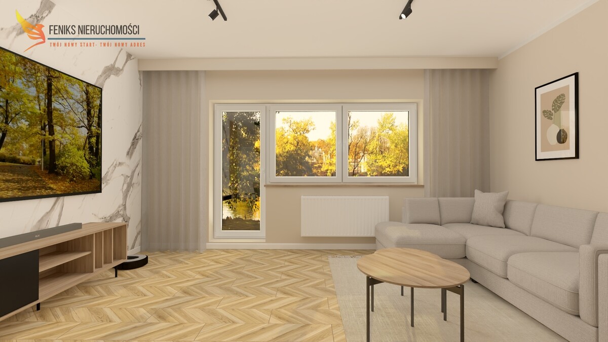 Mieszkanie zlokalizowane na 4 piętrze z windą w bloku ośmiopiętrowym, w trakcie generalnego remontu. Odbiór mieszkania maj 2026.Już teraz można zobaczyć etapy remontu i zarezerwować mieszkanie. Lokal składa się z salonu połączonego z aneksem kuchennym, 2 odrębnych sypialni, łazienki z wc i przedpokoju. W salonie balkon. Do mieszkania przynależy piwnica. Widok na tereny zielone. Winda z poziomu 0 czyli wejście z chodnika. Ekspozycja okien wschód-zachód. W ramach ceny zabudowa kuchenna bez sprzętu agd, szafa na przedpokoju i siedzisko z wieszakami.