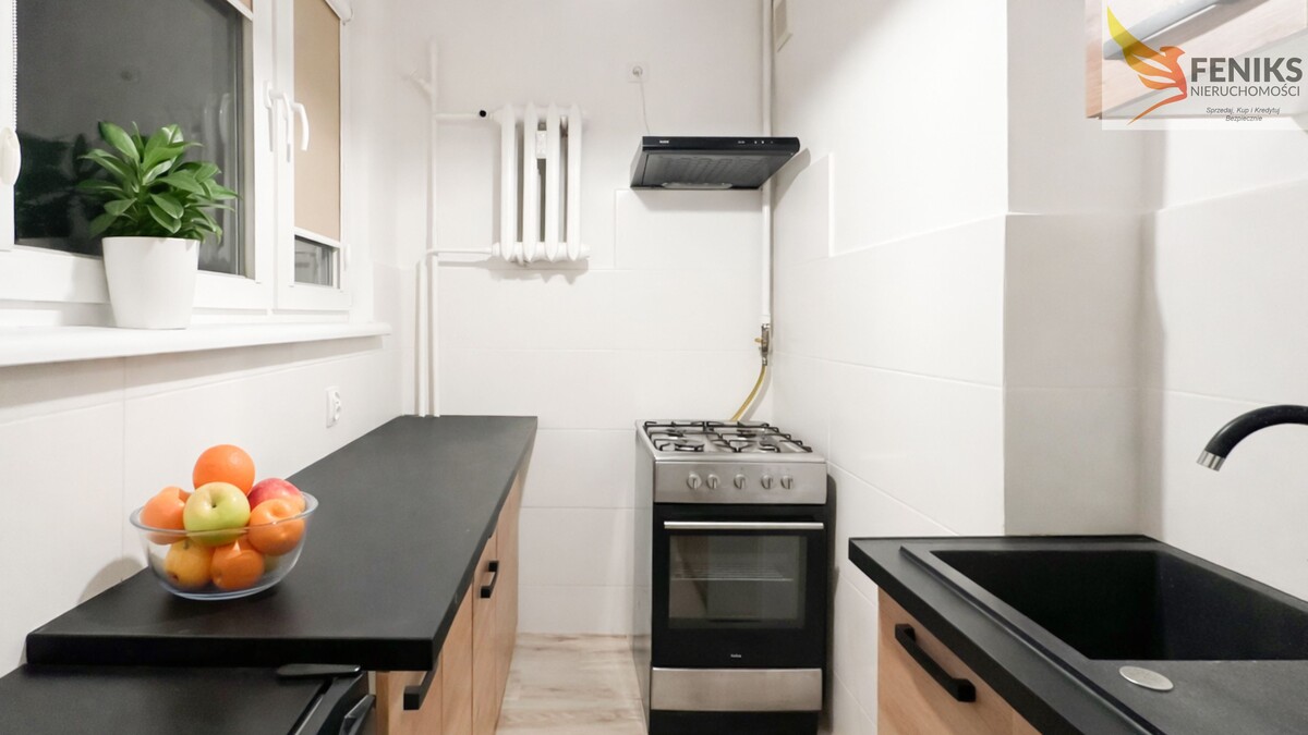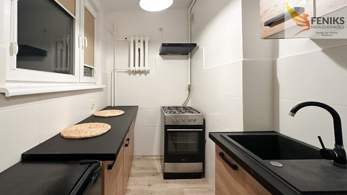 Lokal znajduje się na IV piętrze w bloku po termomodernizacji i remoncie klatki. Należy do spółdzielni mieszkaniowej Sielanka. Mieszkanie jest całkowicie wyremontowane, we własnym zakresie pozostaje jedynie, umeblowanie pokoju (przedstawiona sofa narożna oraz komoda pod ścianą nie są na wyposażeniu). Kuchnia wyposażona jest w kuchenkę gazową, lodówkę oraz szafki. Łazienka została wykończona w nowoczesnym stylu, wyposażona w prysznic i umywalkę, podłączona została pralka. W pokoju znajdują się szafki oraz biały stolik z krzesłami. Do mieszkania przynależy piwnica oraz miejsce parkingowe zabezpieczone szlabanem na pilota. Czynsz jest niski i wynosi 450 zł, ogrzewanie mieszkania, wody jest z miasta.