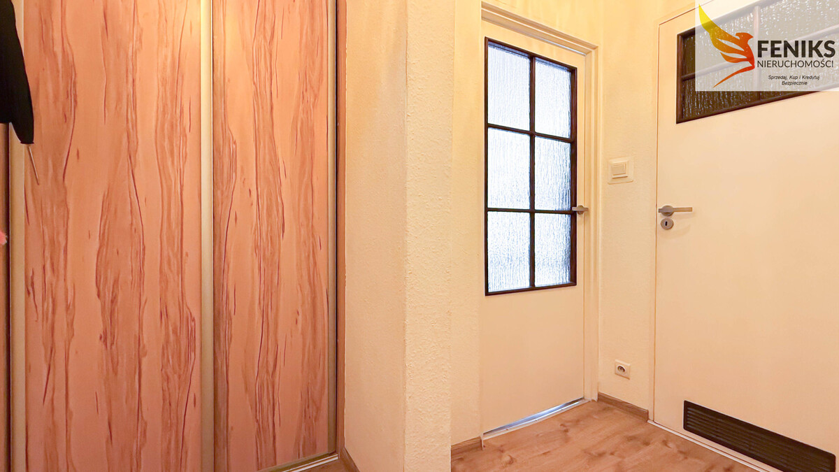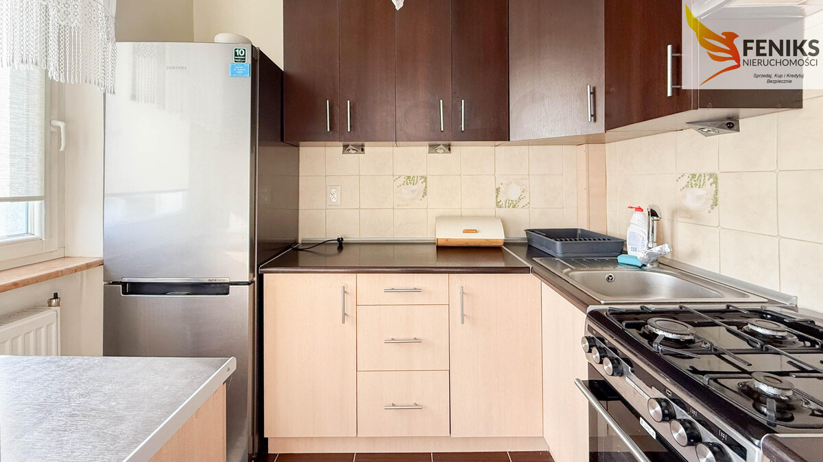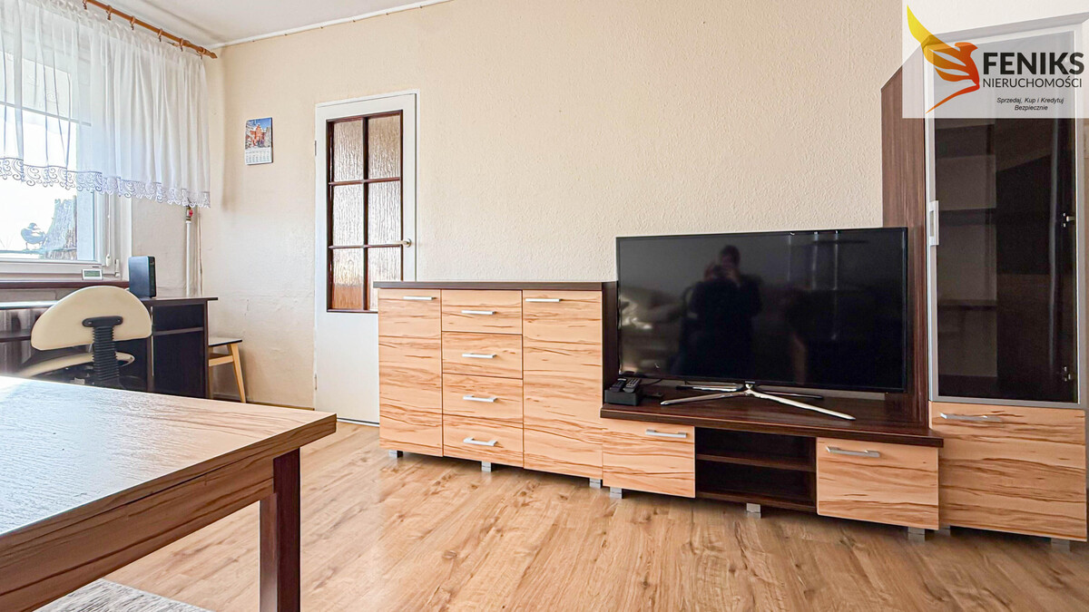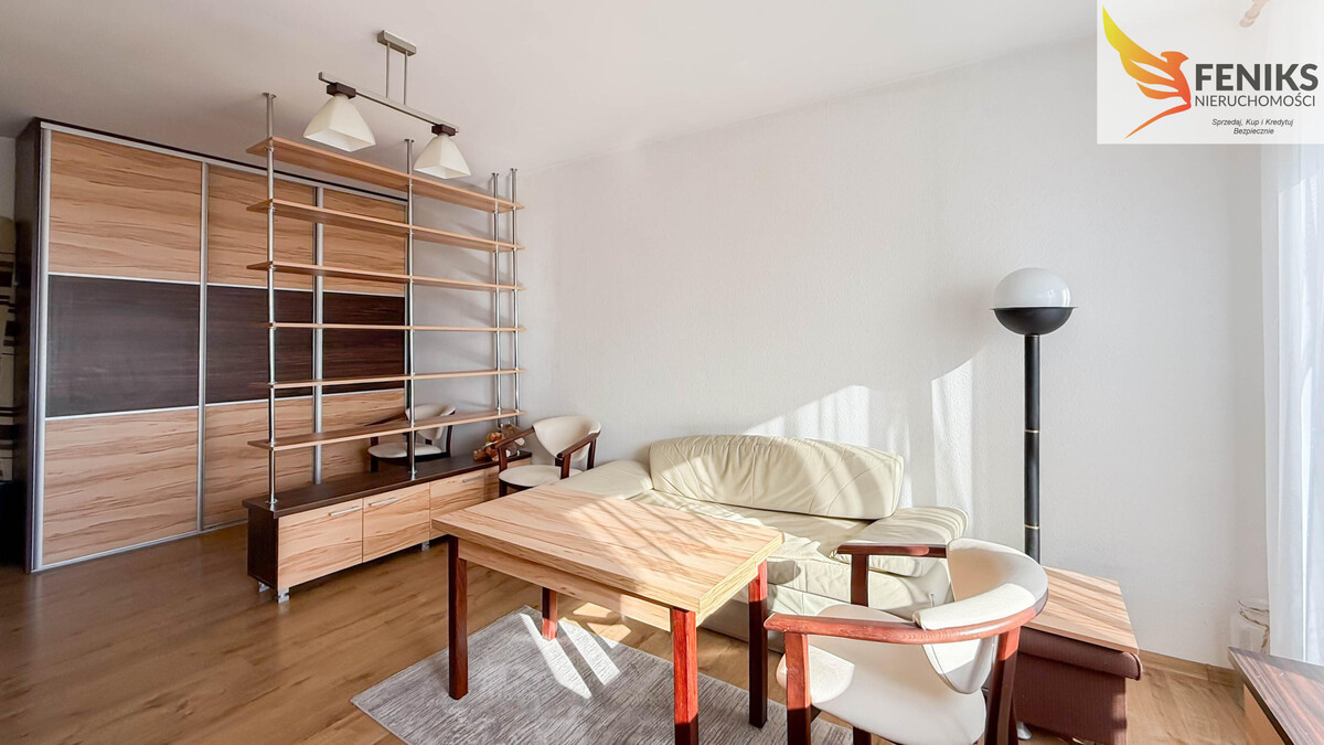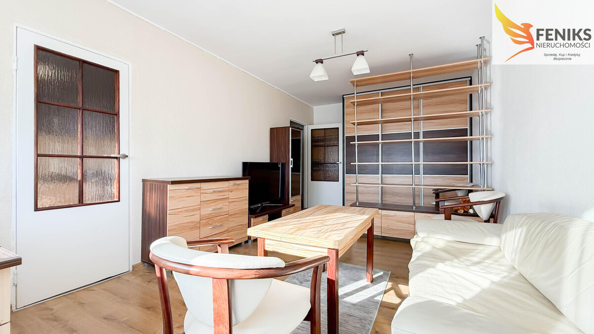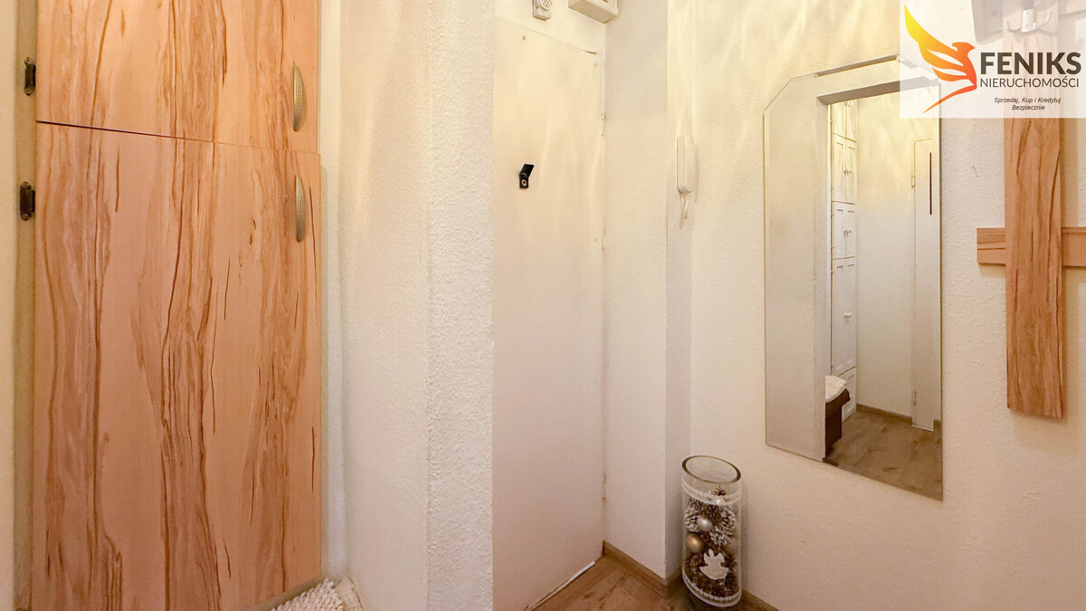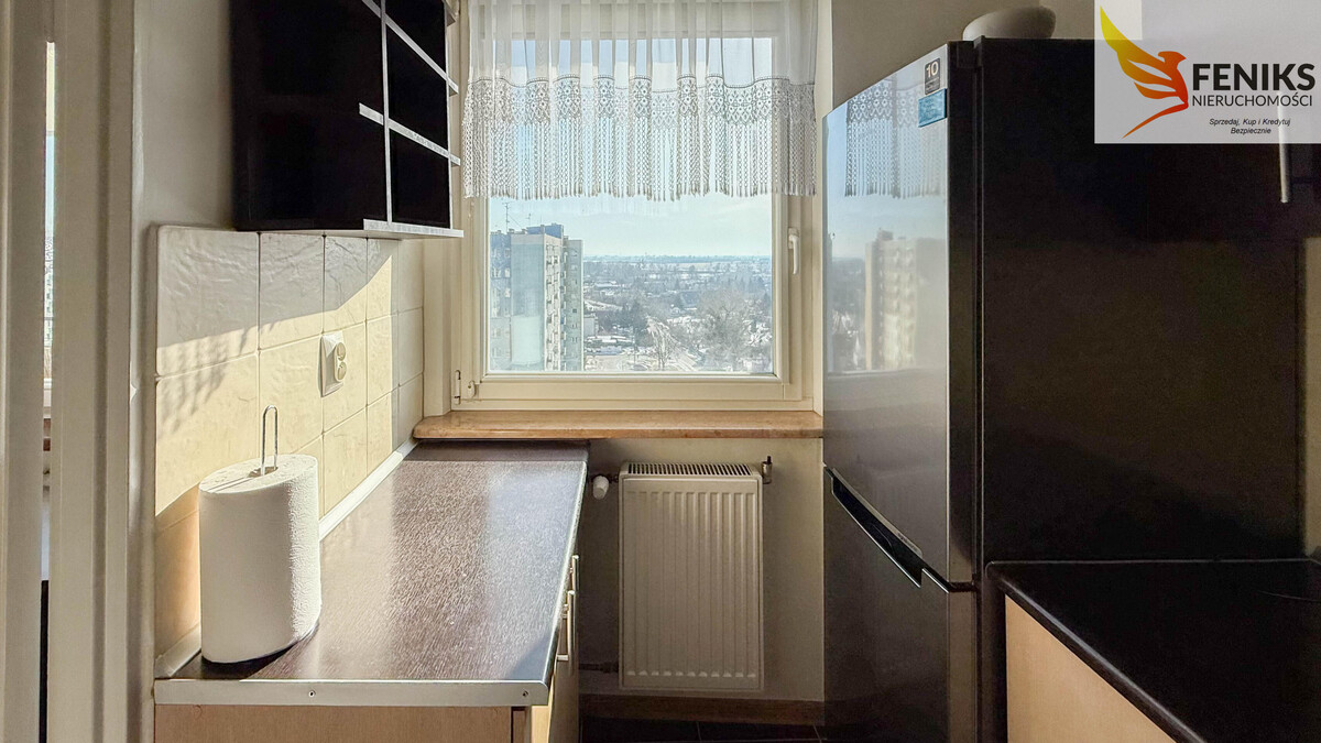 Lokal o powierzchni 32,2 m² znajduje się na ostatnim, 10.piętrze wieżowca, co stanowi atut nieruchomości. Z balkonu rozpościera się szeroki widok na otwartą przestrzeń i obrzeża miasta, a położenie na najwyższej kondygnacji zapewnia większą ilość światła dziennego oraz przyjemną, panoramiczną perspektywę. Mieszkanie ma jednostronną wystawę okien i składa się z przestronnego pokoju dziennego, osobnej kuchni, łazienki z wanną oraz przedpokoju z szafą w zabudowie. Do lokalu przynależy piwnica. Nieruchomość jest zadbana i przytulna, nie wymaga większych nakładów finansowych – ewentualne prace mogą ograniczyć się do odświeżenia według własnych preferencji. Mieszkanie sprzedawane jest z pełnym wyposażeniem – w cenie pozostają meble oraz sprzęty AGD, co umożliwia natychmiastowe zamieszkanie lub rozpoczęcie wynajmu bez dodatkowych inwestycji. Wszystkie media są z sieci miejskiej. Czynsz administracyjny wynosi około 700 zł miesięcznie. Przy budynku dostępny jest parking dla mieszkańców. To dobra propozycja zarówno jako pierwsze mieszkanie, jak i pod inwestycję na wynajem.