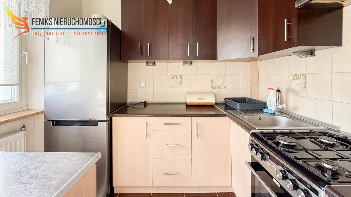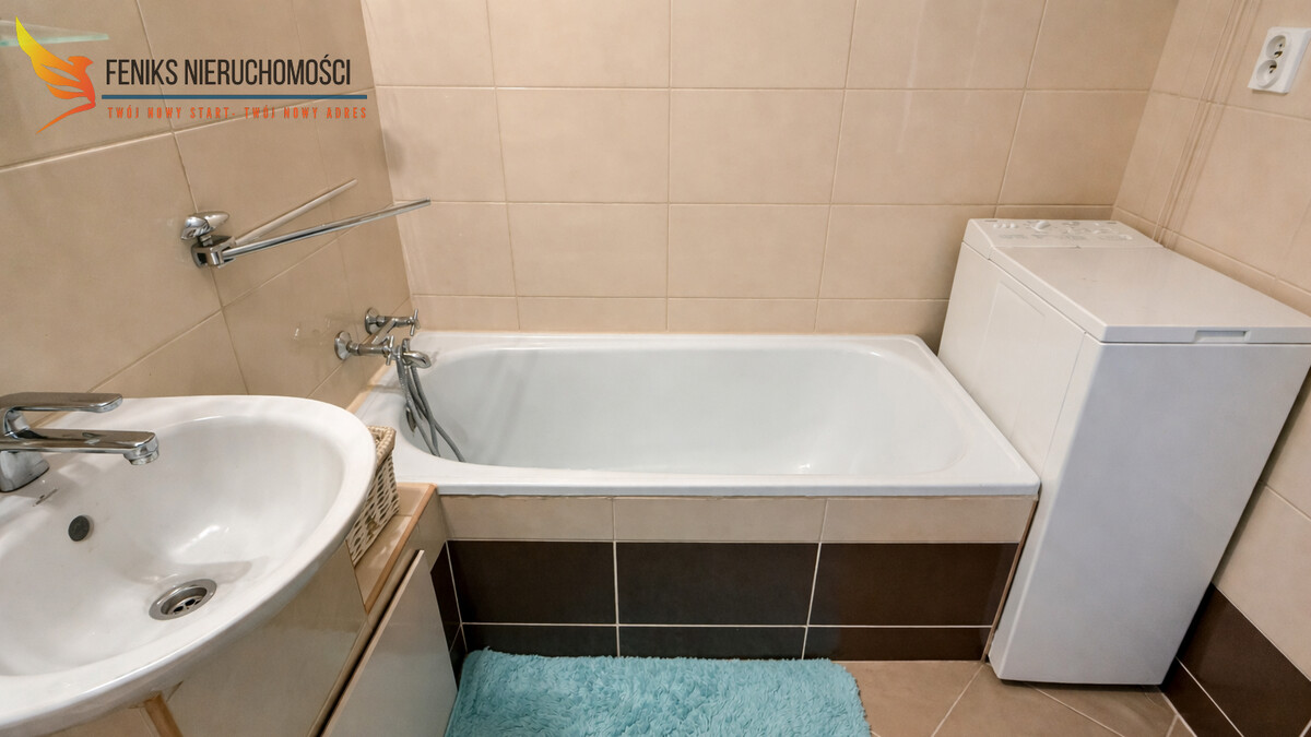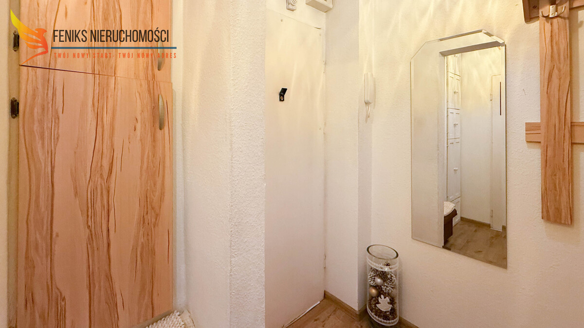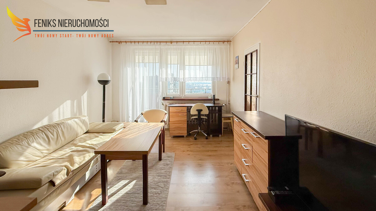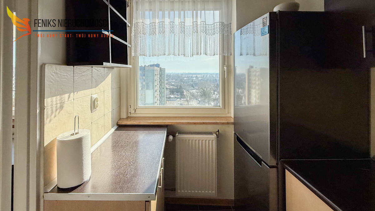 Lokal o powierzchni 32,2 m² znajduje się na ostatnim, 10.piętrze wieżowca, co stanowi atut nieruchomości. Z balkonu rozpościera się szeroki widok na otwartą przestrzeń i obrzeża miasta, a położenie na najwyższej kondygnacji zapewnia większą ilość światła dziennego oraz przyjemną, panoramiczną perspektywę. Mieszkanie ma jednostronną wystawę okien i składa się z przestronnego pokoju dziennego, osobnej kuchni, łazienki z wanną oraz przedpokoju z szafą w zabudowie. Do lokalu przynależy piwnica. Nieruchomość jest zadbana i przytulna, nie wymaga większych nakładów finansowych – ewentualne prace mogą ograniczyć się do odświeżenia według własnych preferencji. Mieszkanie sprzedawane jest z pełnym wyposażeniem – w cenie pozostają meble oraz sprzęty AGD, co umożliwia natychmiastowe zamieszkanie lub rozpoczęcie wynajmu bez dodatkowych inwestycji. Wszystkie media są z sieci miejskiej. Czynsz administracyjny wynosi około 700 zł miesięcznie. Przy budynku dostępny jest parking dla mieszkańców. To dobra propozycja zarówno jako pierwsze mieszkanie, jak i pod inwestycję na wynajem.