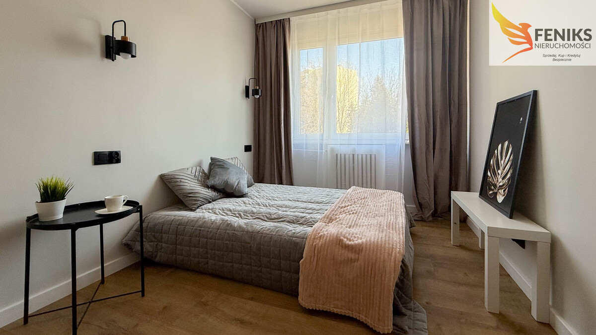 Mieszkanie o powierzchni 59,5 m², położone jest na 1 piętrze wieżowca z windą. Lokal składa się z salonu z aneksem kuchennym, 3 niezależnych pokoi, oddzielnego WC, łazienki z prysznicem oraz podwójnego przedpokoju (mniejszy przejściowy i większy). Salon oferuje wyjście na dużą loggię. Mieszkanie przeszło generalny remont - wszystko jest nowe, wykończone w jasnych, uniwersalnych kolorach, gotowe do wprowadzenia – idealne do umeblowania i doposażenia według własnych potrzeb. Czynsz wynosi 750 zł na jedną osobę, wszystkie media pochodzą z sieci miejskiej. Aneks kuchenny wyposażony w meble na wymiar bez sprzętu agd. Mieszkanie idealnie dla rodziny, pary lub jako inwestycja pod wynajem.