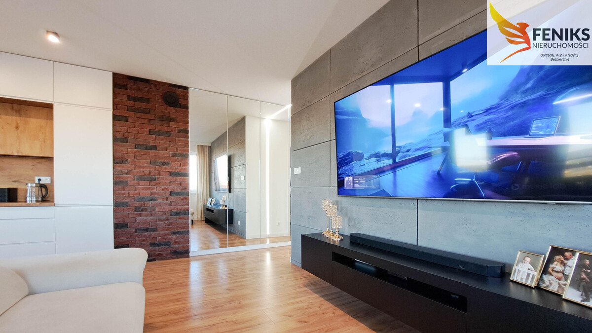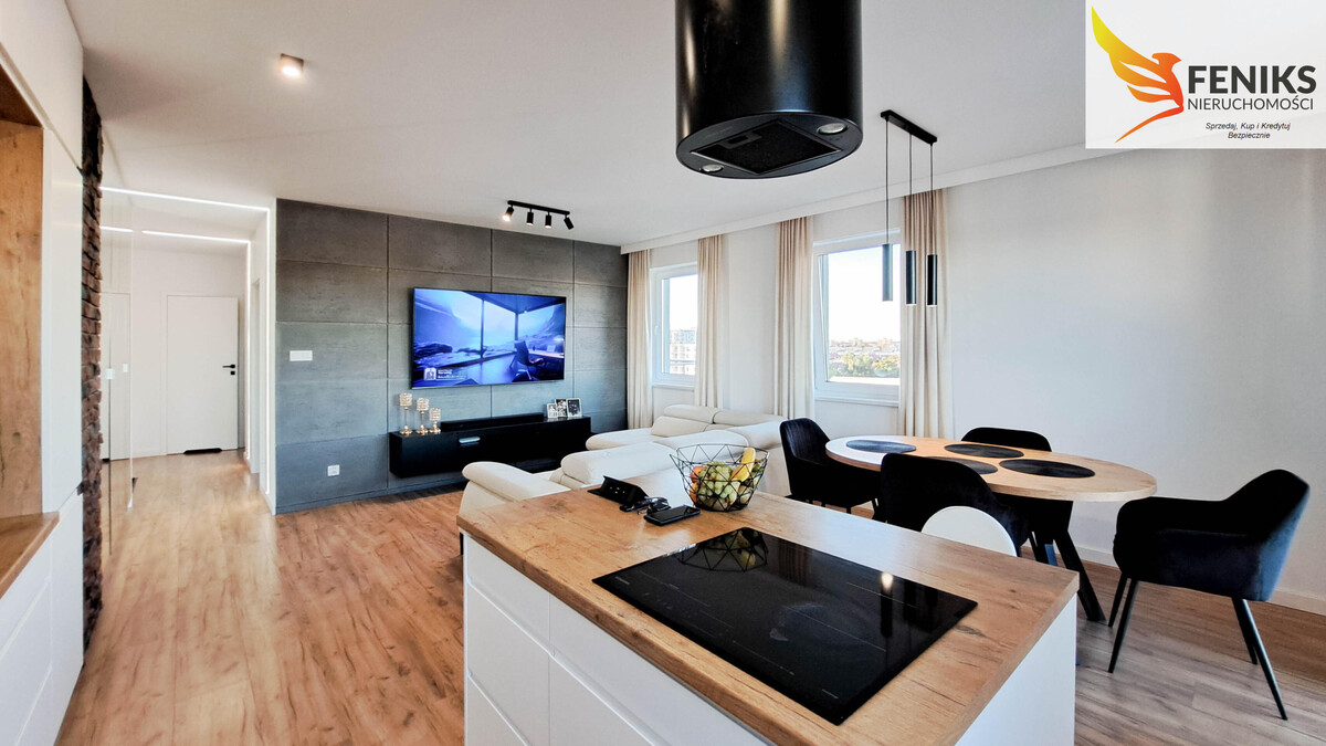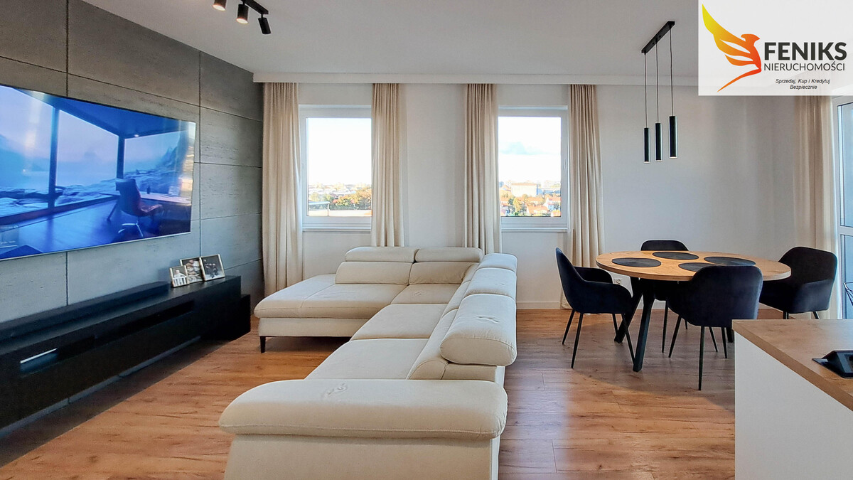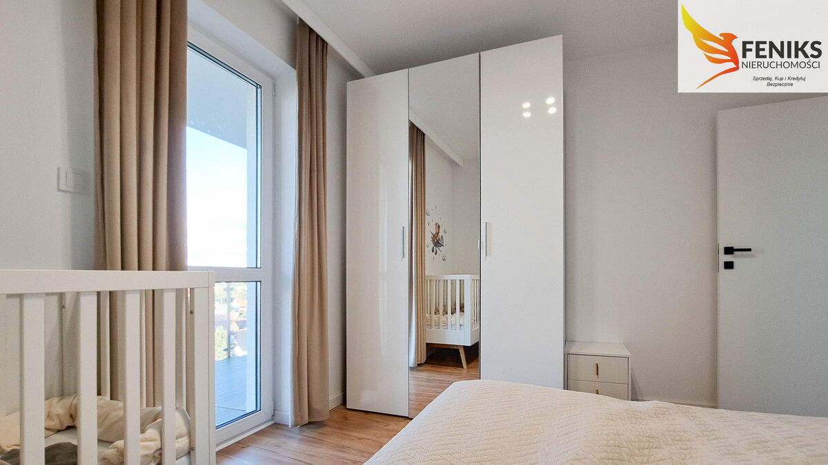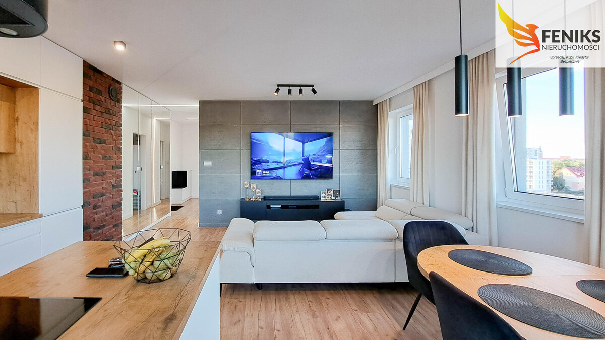 Nowoczesne, gustownie wykończone mieszkanie o powierzchni 60,4 m², położone jest na 6.piętrze ośmiopiętrowego budynku ElTower – jednej z najbardziej prestiżowych inwestycji mieszkaniowych w Elblągu. Funkcjonalny układ pomieszczeń obejmuje przestronny salon z aneksem kuchennym, dwie niezależne sypialnie, komfortową łazienkę z wanną i WC oraz ustawny przedpokój, w którym znajduje się pojemna szafa z lustrem. Z salonu prowadzi wyjście na duży, narożny balkon o powierzchni 13,5 m², natomiast z obu sypialni dostępny jest drugi, równie przestronny balkon 9 m². Z każdego z nich rozpościera się malowniczy widok na zielone tereny podelbląskie oraz pobliskie lotnisko – idealne miejsce do relaksu i obserwacji startujących i lądujących samolotów. Ekspozycja wschodnio-północna zapewnia przyjemne, rozproszone światło dzienne, co sprawia, że wnętrze jest jasne i komfortowe przez cały dzień. Mieszkanie zostało urządzone w nowoczesnym stylu, z dbałością o detale. Sprzedawane jest z pełnym wyposażeniem, co pozwala na natychmiastowe zamieszkanie bez dodatkowych nakładów. Dodatkowym atutem jest ogrzewanie podłogowe we wszystkich pomieszczeniach, zapewniające komfort cieplny przez cały rok. Miesięczny czynsz wynosi 880 zł (dla dwóch osób). Do mieszkania przynależą dwie komórki lokatorskie dostępne za dodatkową opłatą – jedna przy mieszkaniu (2,42 m²) w cenie 17 000 zł oraz druga w piwnicy (2,69 m²) za 13 000 zł. Istnieje również możliwość zakupu miejsca postojowego w hali garażowej w cenie 65 000 zł. To wyjątkowa oferta dla osób szukających nowoczesnego, w pełni urządzonego mieszkania z pięknym widokiem i wygodną infrastrukturą. Mieszkanie idealnie sprawdzi się zarówno jako komfortowe miejsce do życia, jak i atrakcyjna inwestycja pod wynajem.