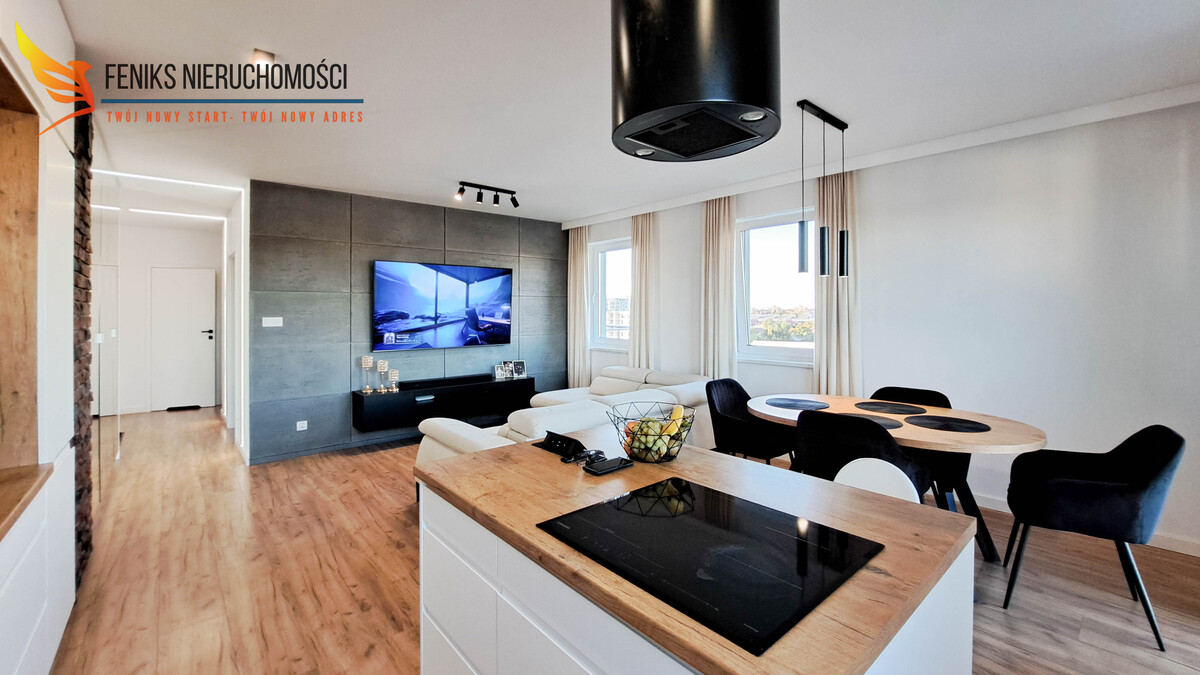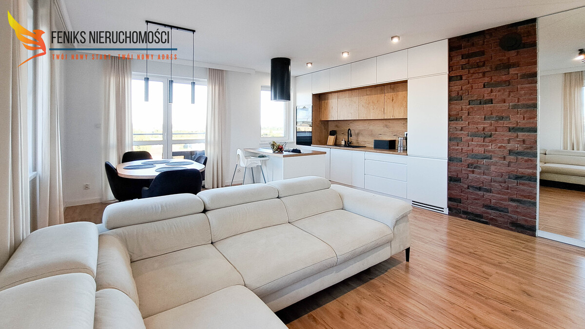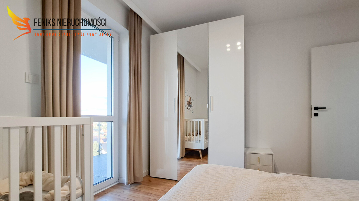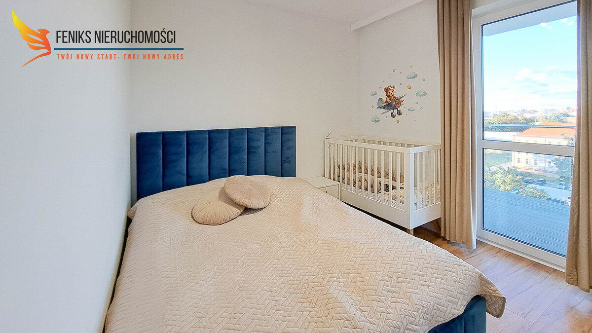 Nowoczesne, gustownie wykończone mieszkanie o powierzchni 60,4 m², położone jest na 6.piętrze ośmiopiętrowego budynku ElTower – jednej z najbardziej prestiżowych inwestycji mieszkaniowych w Elblągu. Funkcjonalny układ pomieszczeń obejmuje przestronny salon z aneksem kuchennym, dwie niezależne sypialnie, komfortową łazienkę z wanną i WC oraz ustawny przedpokój, w którym znajduje się pojemna szafa z lustrem. Z salonu prowadzi wyjście na duży, narożny balkon o powierzchni 13,5 m², natomiast z obu sypialni dostępny jest drugi, równie przestronny balkon 9 m². Z każdego z nich rozpościera się malowniczy widok na zielone tereny podelbląskie oraz pobliskie lotnisko – idealne miejsce do relaksu i obserwacji startujących i lądujących samolotów. Ekspozycja wschodnio-północna zapewnia przyjemne, rozproszone światło dzienne, co sprawia, że wnętrze jest jasne i komfortowe przez cały dzień. Mieszkanie zostało urządzone w nowoczesnym stylu, z dbałością o detale. Sprzedawane jest z pełnym wyposażeniem, co pozwala na natychmiastowe zamieszkanie bez dodatkowych nakładów. Dodatkowym atutem jest ogrzewanie podłogowe we wszystkich pomieszczeniach, zapewniające komfort cieplny przez cały rok. Miesięczny czynsz wynosi 880 zł (dla dwóch osób). Do mieszkania przynależą dwie komórki lokatorskie dostępne za dodatkową opłatą – jedna przy mieszkaniu (2,42 m²) w cenie 17 000 zł oraz druga w piwnicy (2,69 m²) za 13 000 zł. Istnieje również możliwość zakupu miejsca postojowego w hali garażowej w cenie 65 000 zł. To wyjątkowa oferta dla osób szukających nowoczesnego, w pełni urządzonego mieszkania z pięknym widokiem i wygodną infrastrukturą. Mieszkanie idealnie sprawdzi się zarówno jako komfortowe miejsce do życia, jak i atrakcyjna inwestycja pod wynajem.