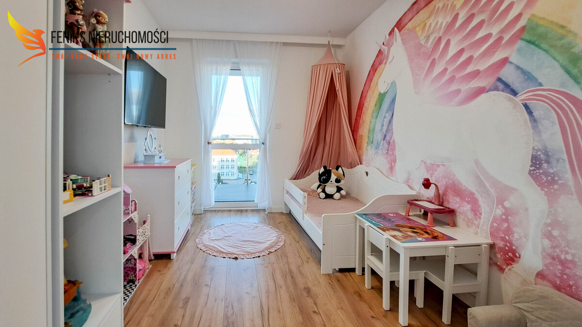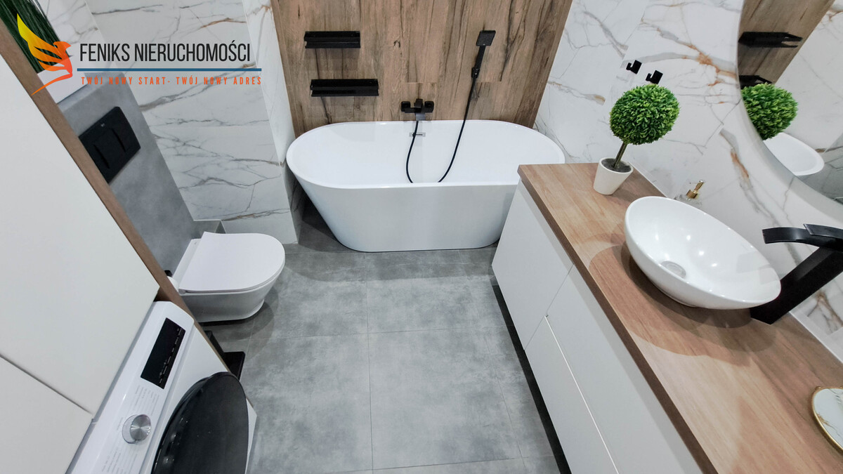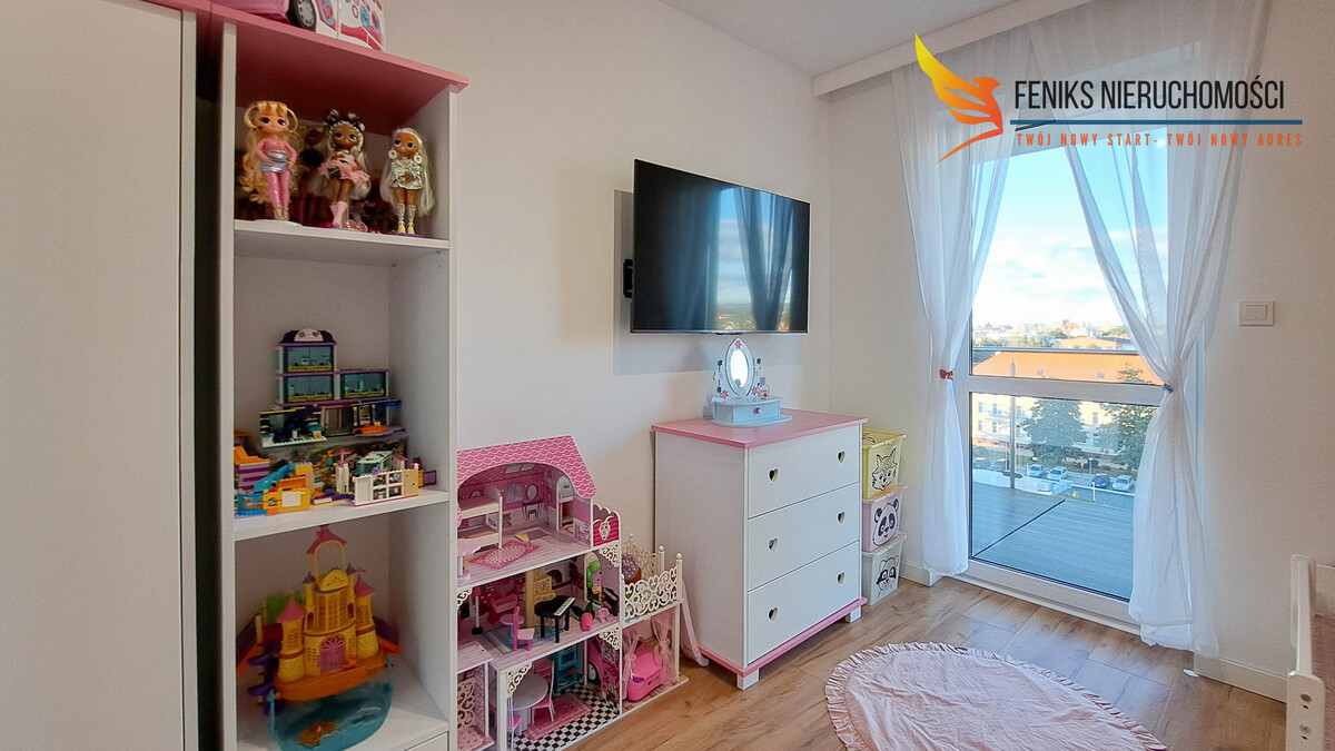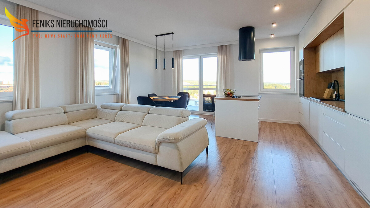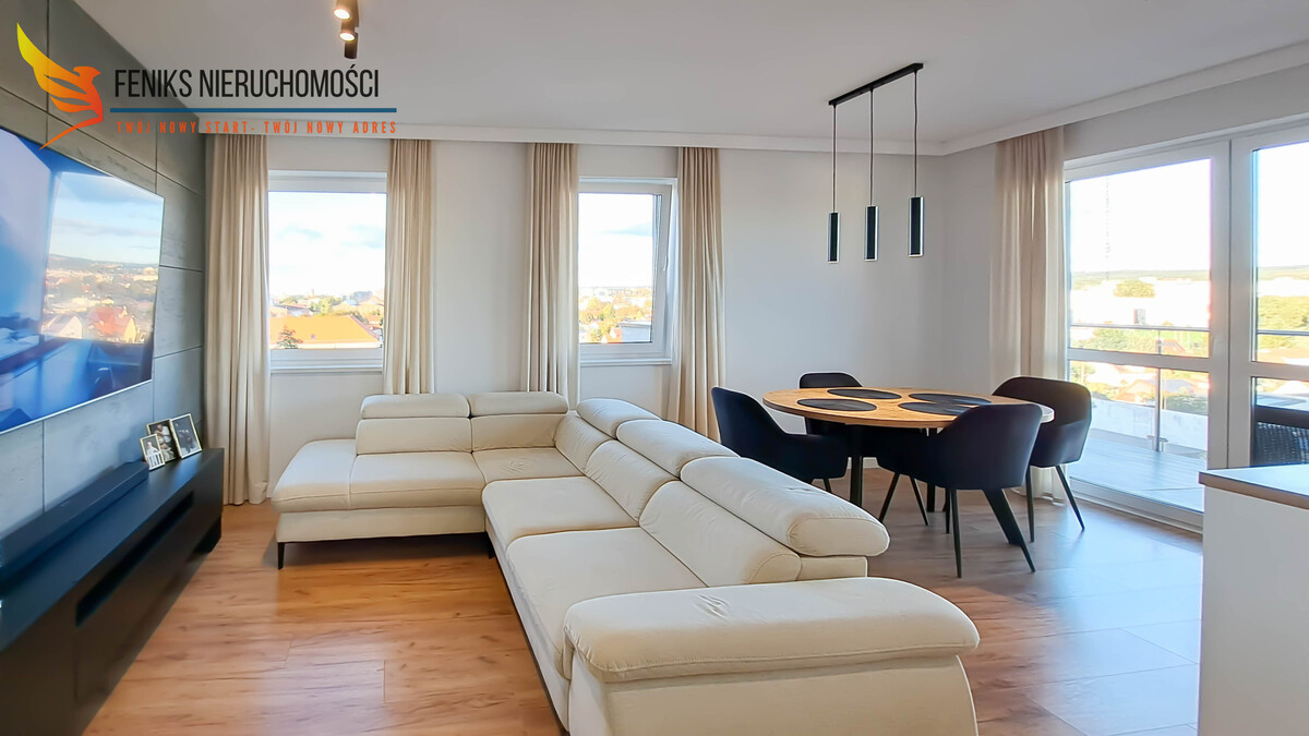 Nowoczesne, gustownie wykończone mieszkanie o powierzchni 60,4 m², położone jest na 6.piętrze ośmiopiętrowego budynku ElTower – jednej z najbardziej prestiżowych inwestycji mieszkaniowych w Elblągu. Funkcjonalny układ pomieszczeń obejmuje przestronny salon z aneksem kuchennym, dwie niezależne sypialnie, komfortową łazienkę z wanną i WC oraz ustawny przedpokój, w którym znajduje się pojemna szafa z lustrem. Z salonu prowadzi wyjście na duży, narożny balkon o powierzchni 13,5 m², natomiast z obu sypialni dostępny jest drugi, równie przestronny balkon 9 m². Z każdego z nich rozpościera się malowniczy widok na zielone tereny podelbląskie oraz pobliskie lotnisko – idealne miejsce do relaksu i obserwacji startujących i lądujących samolotów. Ekspozycja wschodnio-północna zapewnia przyjemne, rozproszone światło dzienne, co sprawia, że wnętrze jest jasne i komfortowe przez cały dzień. Mieszkanie zostało urządzone w nowoczesnym stylu, z dbałością o detale. Sprzedawane jest z pełnym wyposażeniem, co pozwala na natychmiastowe zamieszkanie bez dodatkowych nakładów. Dodatkowym atutem jest ogrzewanie podłogowe we wszystkich pomieszczeniach, zapewniające komfort cieplny przez cały rok. Miesięczny czynsz wynosi 880 zł (dla dwóch osób). Do mieszkania przynależą dwie komórki lokatorskie dostępne za dodatkową opłatą – jedna przy mieszkaniu (2,42 m²) w cenie 17 000 zł oraz druga w piwnicy (2,69 m²) za 13 000 zł. Istnieje również możliwość zakupu miejsca postojowego w hali garażowej w cenie 65 000 zł. To wyjątkowa oferta dla osób szukających nowoczesnego, w pełni urządzonego mieszkania z pięknym widokiem i wygodną infrastrukturą. Mieszkanie idealnie sprawdzi się zarówno jako komfortowe miejsce do życia, jak i atrakcyjna inwestycja pod wynajem.