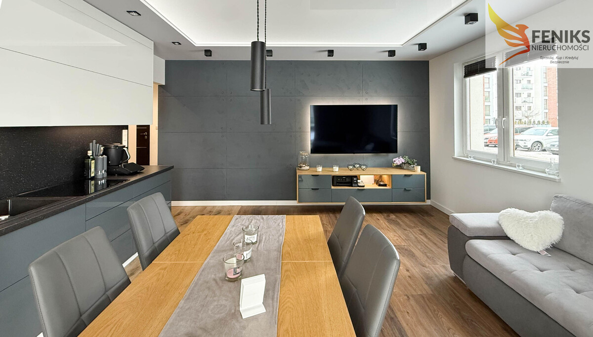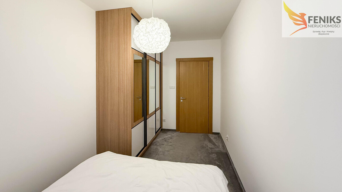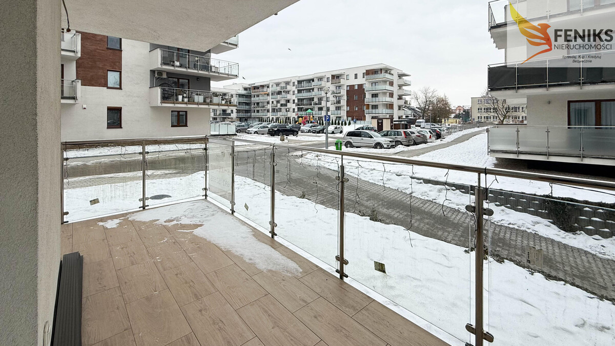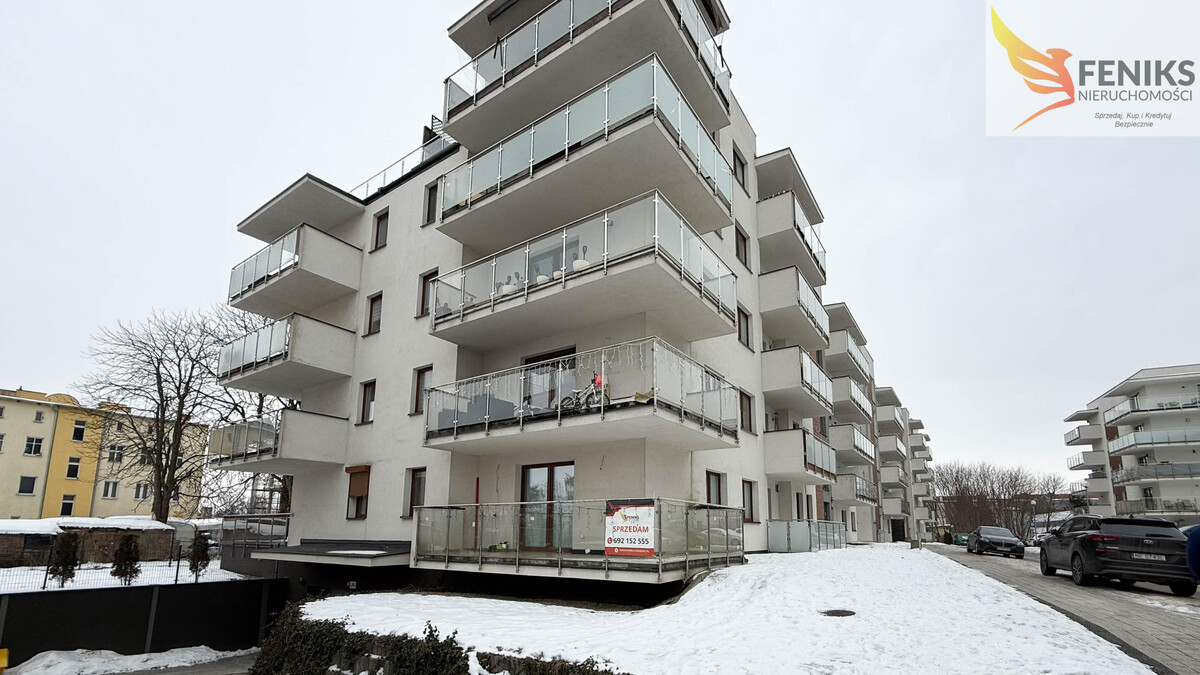 Lokal położony jest na parterze budynku z 2018 roku. Powierzchnia mieszkania wynosi 53 m² i składa się z przestronnego salonu z aneksem kuchennym, dwóch oddzielnych pokoi, łazienki oraz funkcjonalnego przedpokoju. Z salonu prowadzi wyjście na duży, narożny balkon. W części dziennej zastosowano nowoczesne oświetlenie sufitowe z możliwością zmiany kolorów oraz klimatyczne oświetlenie nad szafkami kuchennymi. Komfort użytkowania podnosi ogrzewanie podłogowe, a wnętrzu elegancji dodają solidne drewniane drzwi z chowanymi zawiasami, podkreślające wysoką jakość wykończenia. Jedna z sypialni jest w pełni umeblowana – znajduje się w niej łóżko sypialniane oraz pojemna szafa z lustrzanymi frontami. W przedpokoju zabudowano dużą, funkcjonalną szafę, a zastosowane lustra optycznie powiększają przestrzeń i nadają jej lekkości. Łazienka wyposażona jest w wannę z częściowym przeszkleniem, co umożliwia korzystanie zarówno z kąpieli, jak i z prysznica – praktyczne rozwiązanie „ 2 w 1” . Mieszkanie jest gustownie i nowocześnie wykończone, gotowe do wprowadzenia. W cenie pozostają wszystkie meble oraz sprzęty AGD: lodówka, piekarnik, płyta/kuchenka oraz zmywarka. Czynsz przy 1 osobie wynosi ok.687 zł/mies.