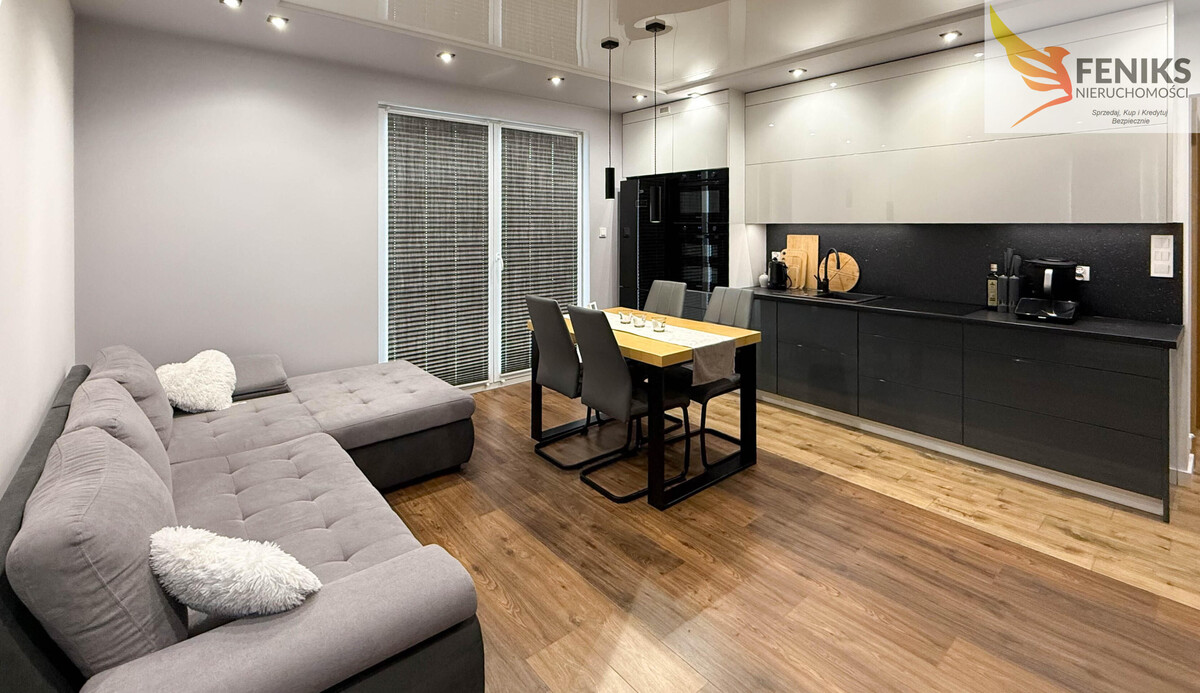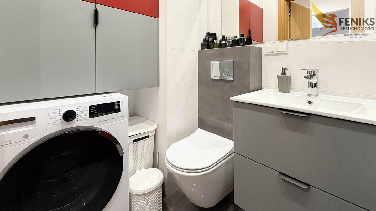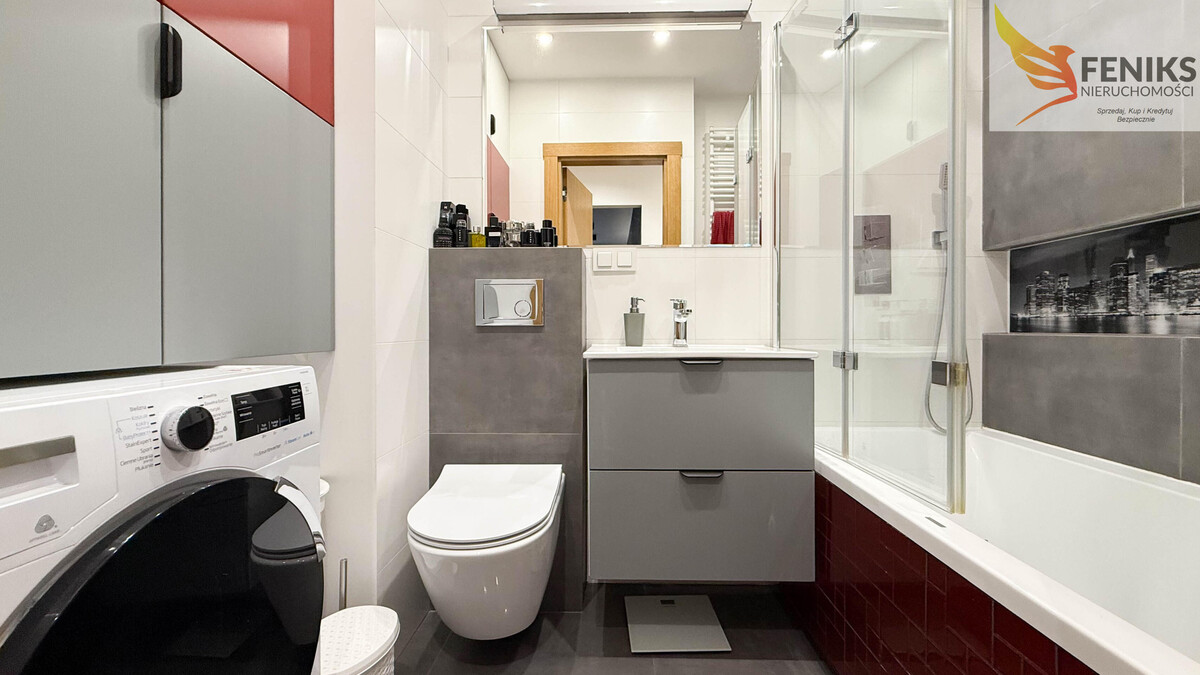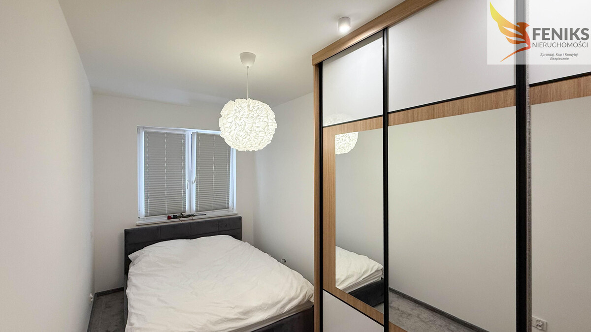 Lokal położony jest na parterze budynku z 2018 roku. Powierzchnia mieszkania wynosi 53 m² i składa się z przestronnego salonu z aneksem kuchennym, dwóch oddzielnych pokoi, łazienki oraz funkcjonalnego przedpokoju. Z salonu prowadzi wyjście na duży, narożny balkon. W części dziennej zastosowano nowoczesne oświetlenie sufitowe z możliwością zmiany kolorów oraz klimatyczne oświetlenie nad szafkami kuchennymi. Komfort użytkowania podnosi ogrzewanie podłogowe, a wnętrzu elegancji dodają solidne drewniane drzwi z chowanymi zawiasami, podkreślające wysoką jakość wykończenia. Jedna z sypialni jest w pełni umeblowana – znajduje się w niej łóżko sypialniane oraz pojemna szafa z lustrzanymi frontami. W przedpokoju zabudowano dużą, funkcjonalną szafę, a zastosowane lustra optycznie powiększają przestrzeń i nadają jej lekkości. Łazienka wyposażona jest w wannę z częściowym przeszkleniem, co umożliwia korzystanie zarówno z kąpieli, jak i z prysznica – praktyczne rozwiązanie „ 2 w 1” . Mieszkanie jest gustownie i nowocześnie wykończone, gotowe do wprowadzenia. W cenie pozostają wszystkie meble oraz sprzęty AGD: lodówka, piekarnik, płyta/kuchenka oraz zmywarka. Czynsz przy 1 osobie wynosi ok.687 zł/mies.
