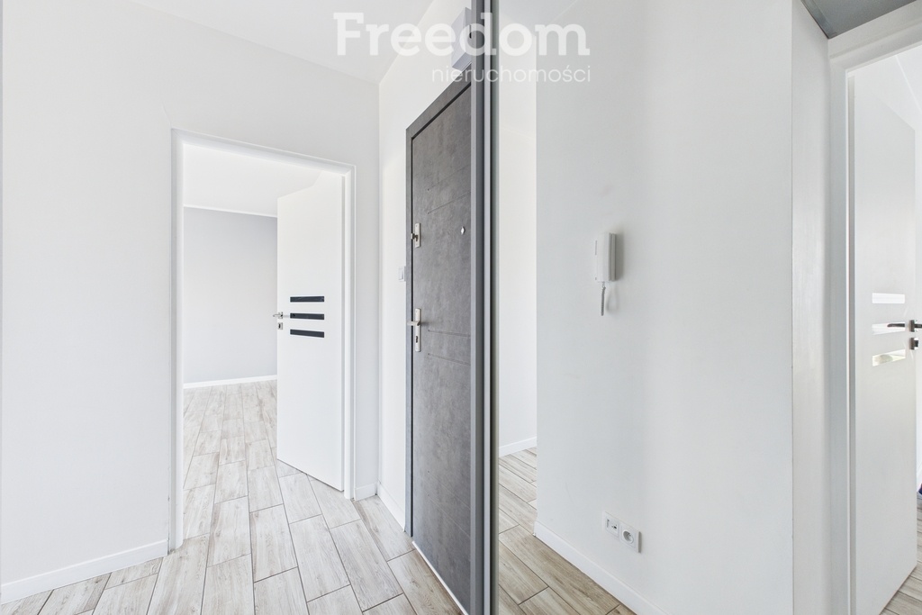 Mieszkanie jest nieumeblowane (oprócz zabudowy stałej oraz widocznych sprzętów AGD), co pozwala na dowolną aranżację i wykorzystanie dostępnej przestrzeni.
