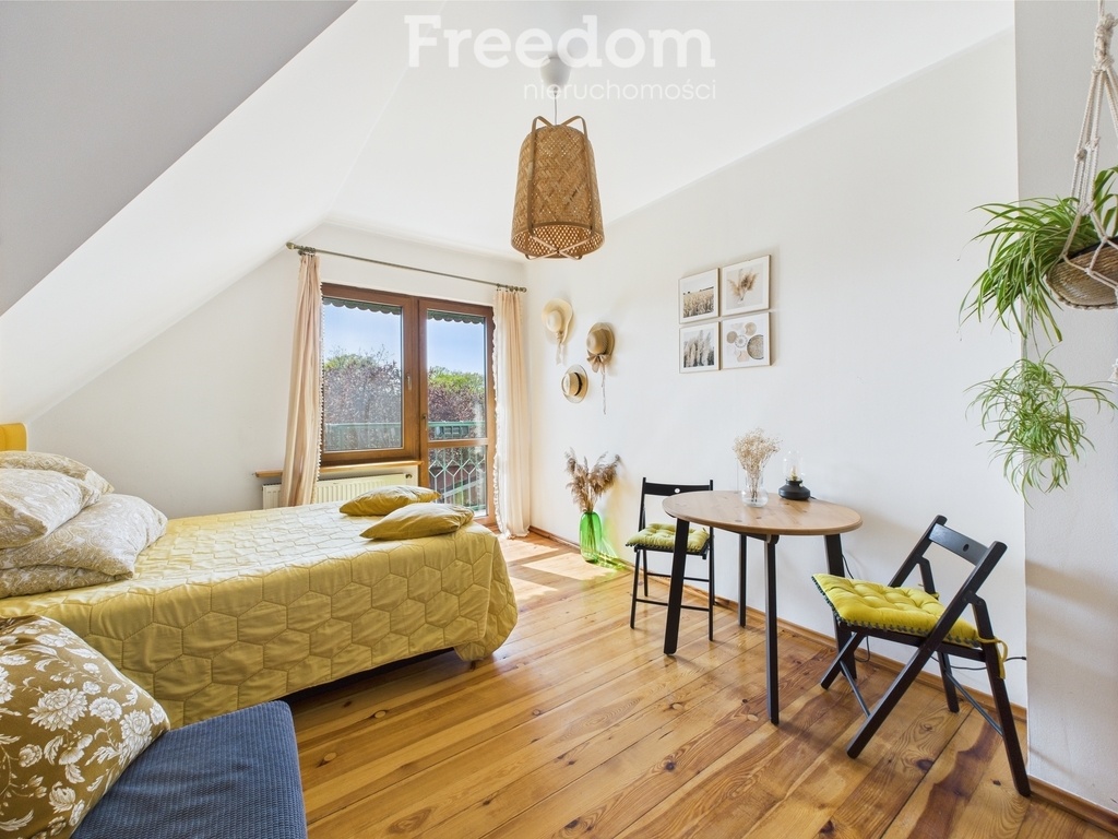 An additional asset is a fenced 360 m² plot located directly next to the property, available for purchase at an extra cost of 42,000 PLN. This space, complete with an outbuilding, serves perfectly as a guest garden or private relaxation zone.