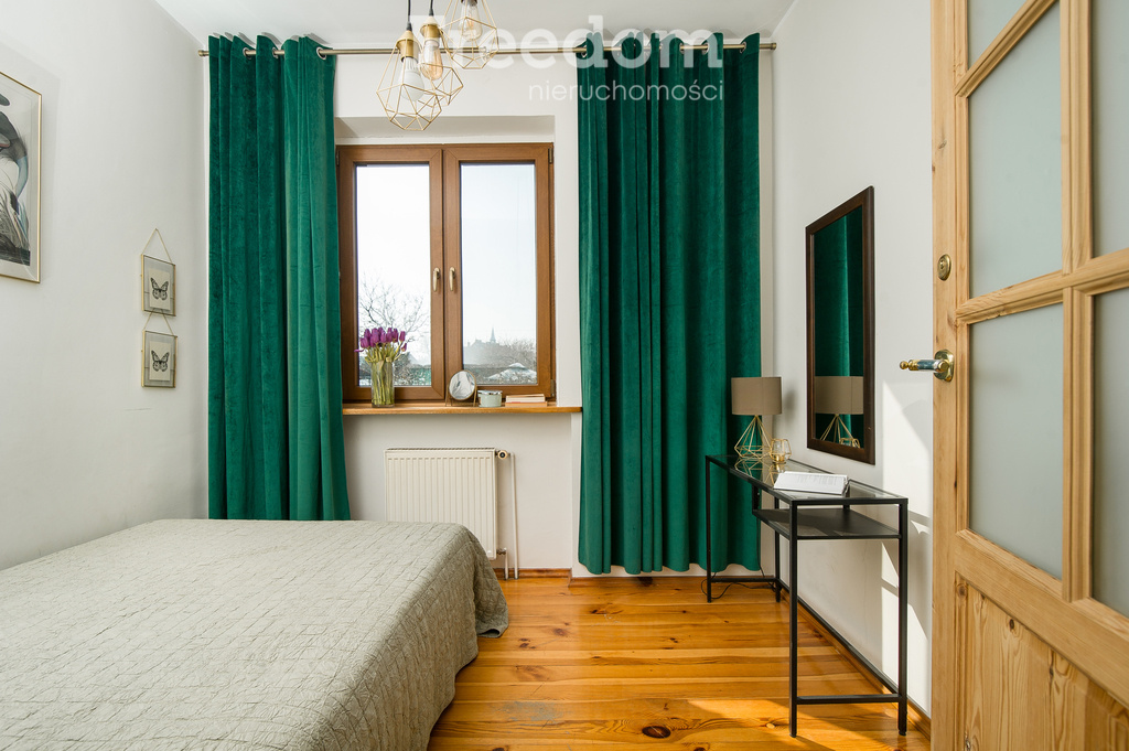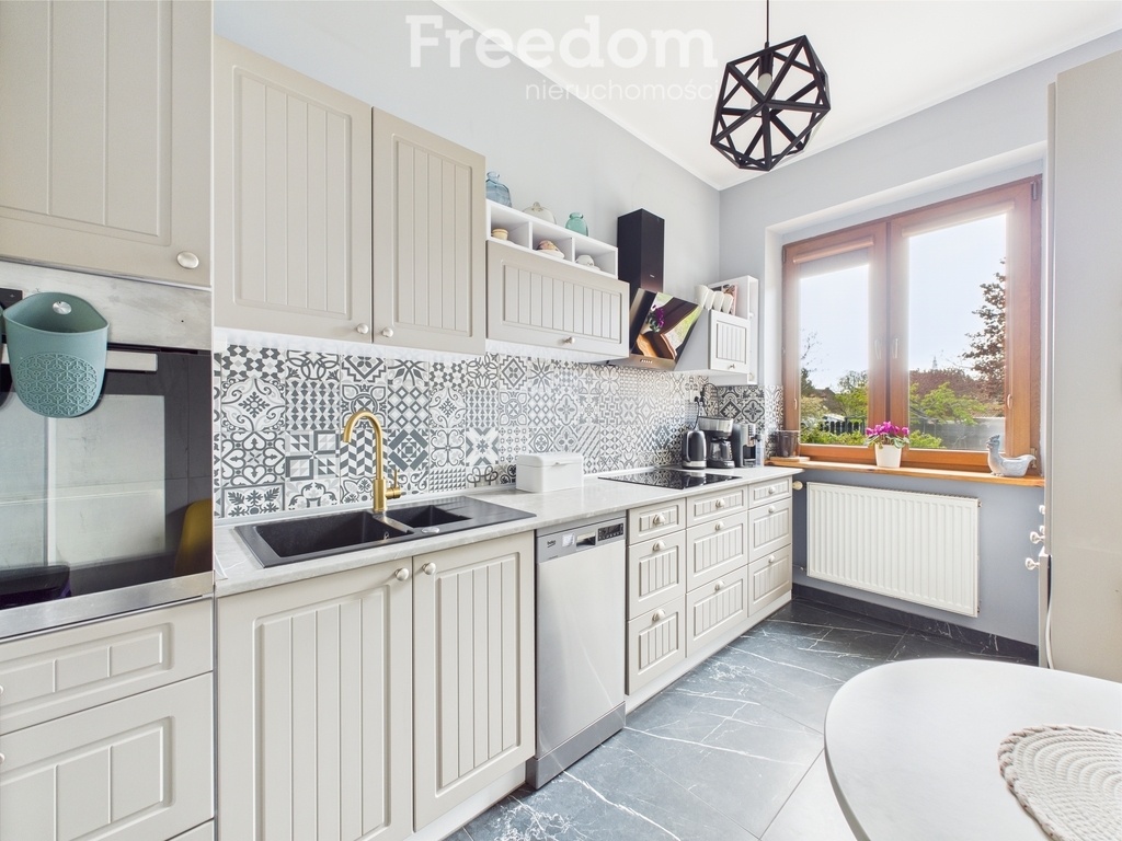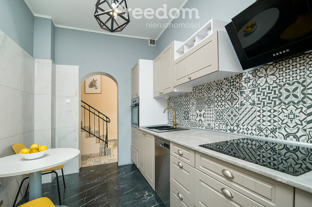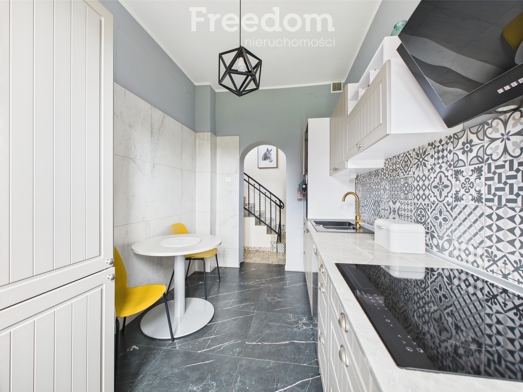 Mieszkanie usytuowane w zabytkowym budynku (budynek czterolokalowy) położony na dwóch kondygnacjach. Na parterze znajduje się jasna kuchnia, łazienka z prysznicem, jedna z trzech sypialni oraz przestronny salon z pięknym, zachowanym w świetnym stanie kaflowym kominkiem, który tworzy wyjątkowy klimat wnętrza. Na piętrze mieszczą się dwie kolejne sypialnie – jedna z nich z bezpośrednim wyjściem na słoneczny balkon – oraz łazienka z wanną, zaaranżowana z pomysłem i dbałością o szczegóły.