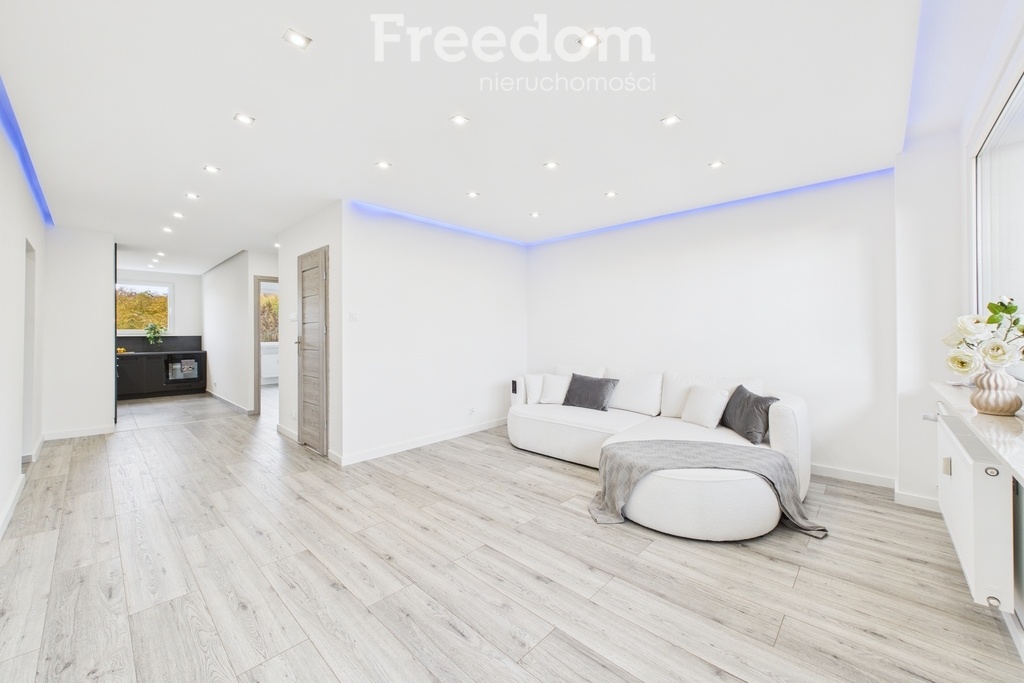 The spacious living room with a comfortable sofa provides the perfect place to relax, while the balcony offers a pleasant view of the greenery and the nearby kindergarten. The two remaining rooms offer numerous arrangement options – they can serve as bedrooms, children's rooms, or offices.