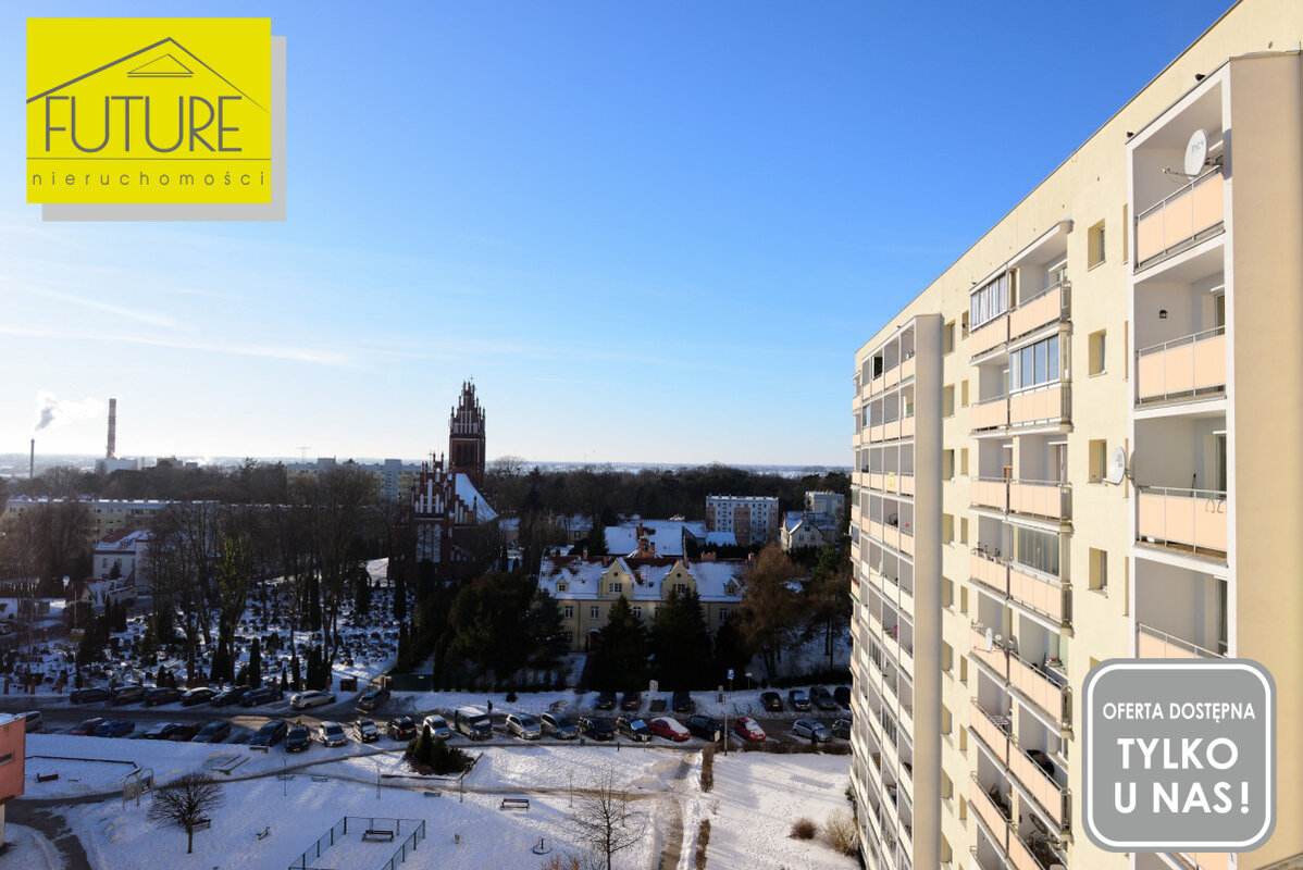 Mieszkanie mieści się na ósmym piętrze przez co z okien rozpościera się piękny widok na panoramę miasta.