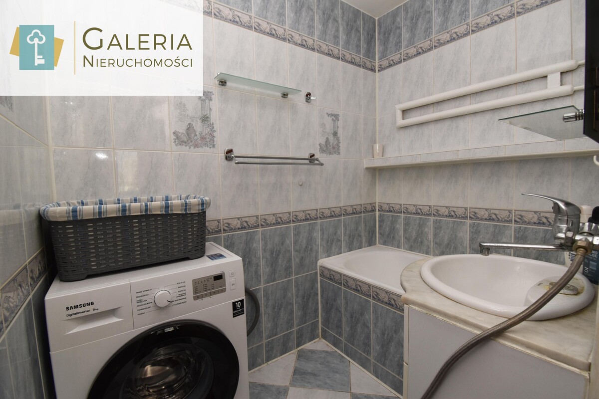 Łazienka wyposażona jest w wannę, umywalkę i pralkę. Oddzielna toaleta to duża wygoda dla domowników.