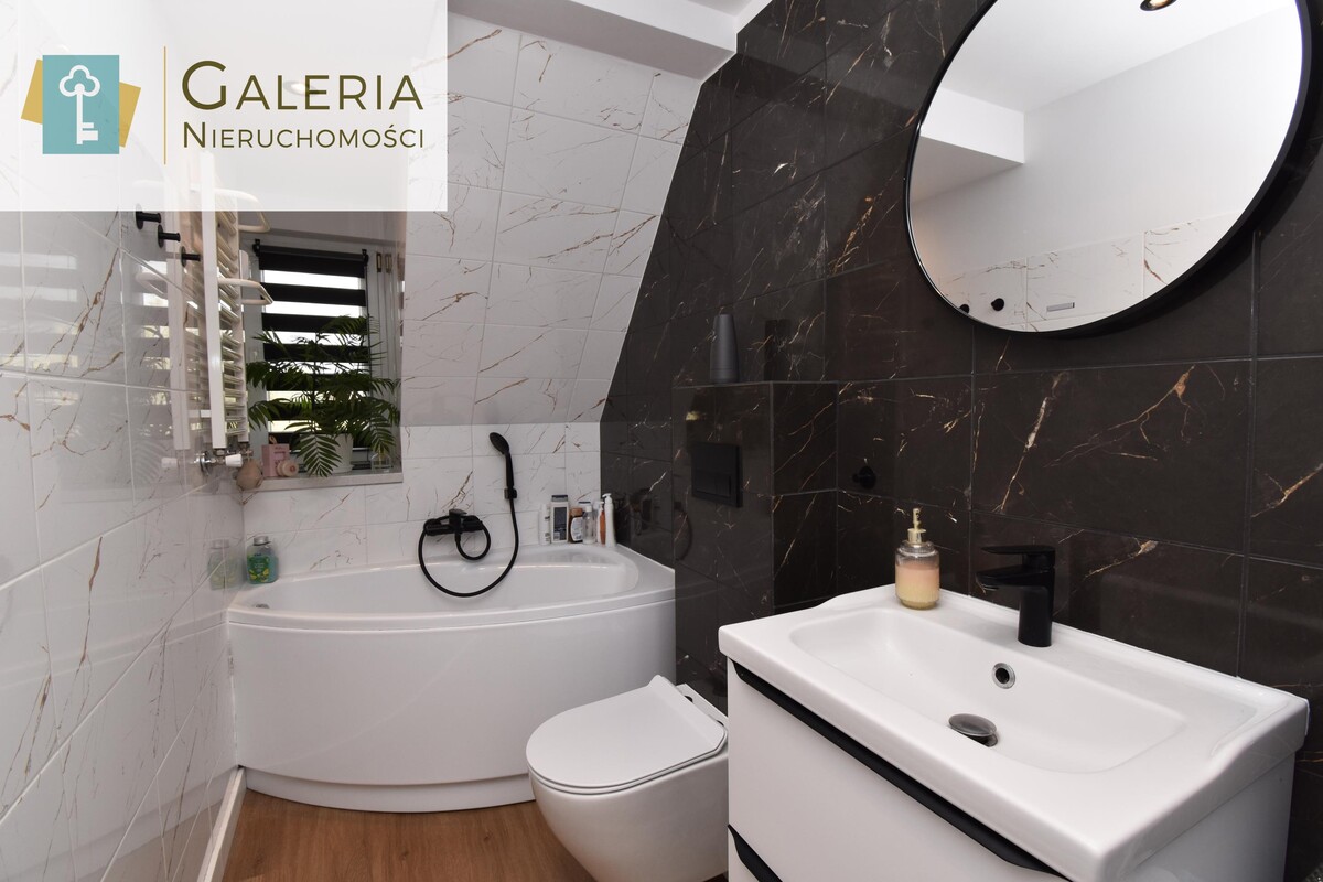 - Funkcjonalny przedpokój z lustrami, lamelami i miejscem do przechowywania wita gości przytulnym klimatem już od progu.