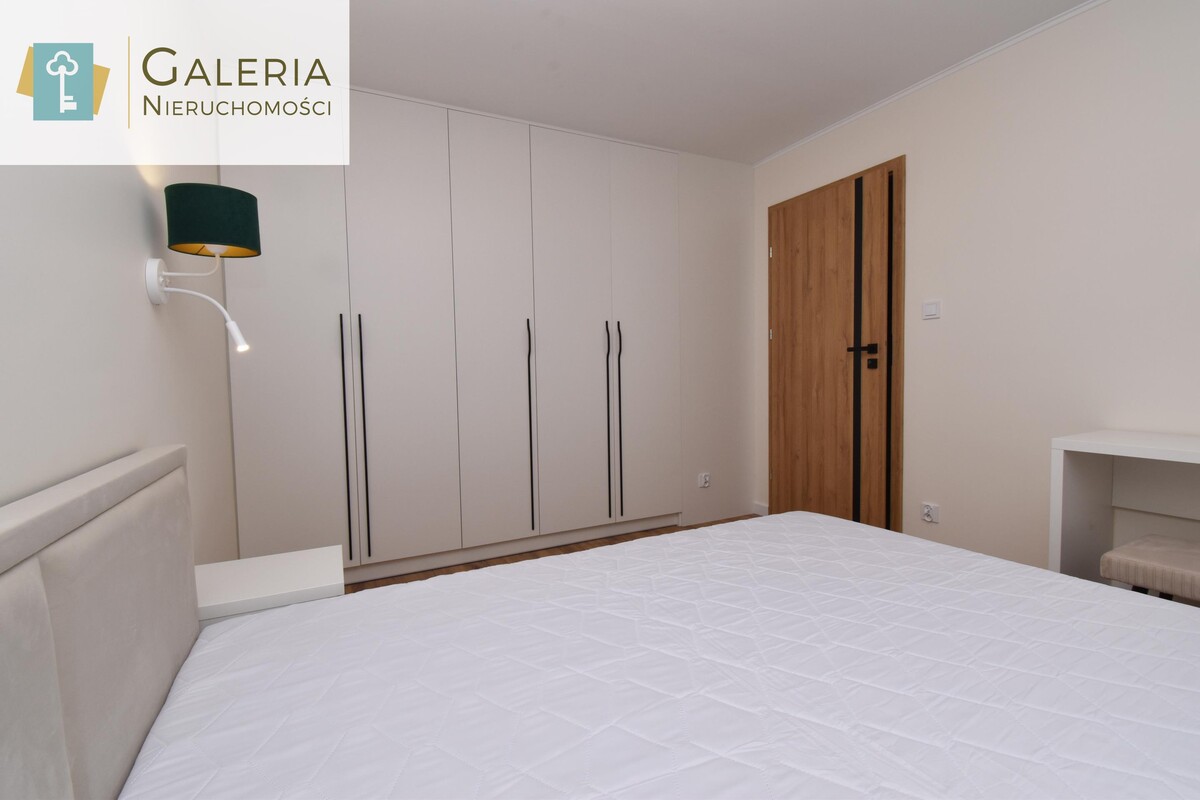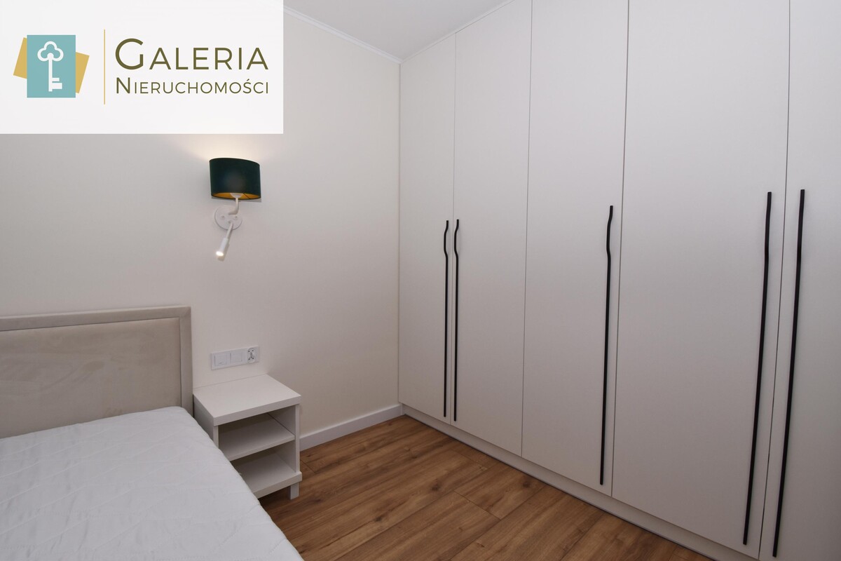Elegancka i przytulna, wyposażona w duże łóżko tapicerowane z nowym materacem, szafki nocne, stylowe kinkiety i toaletkę. Znajduje się tu również pojemna zabudowa na wymiar, która zapewnia mnóstwo miejsca do przechowywania. W sypialni zamontowano także oświetlenie LED sterowane pilotem, które wprowadza nastrojowy klimat.