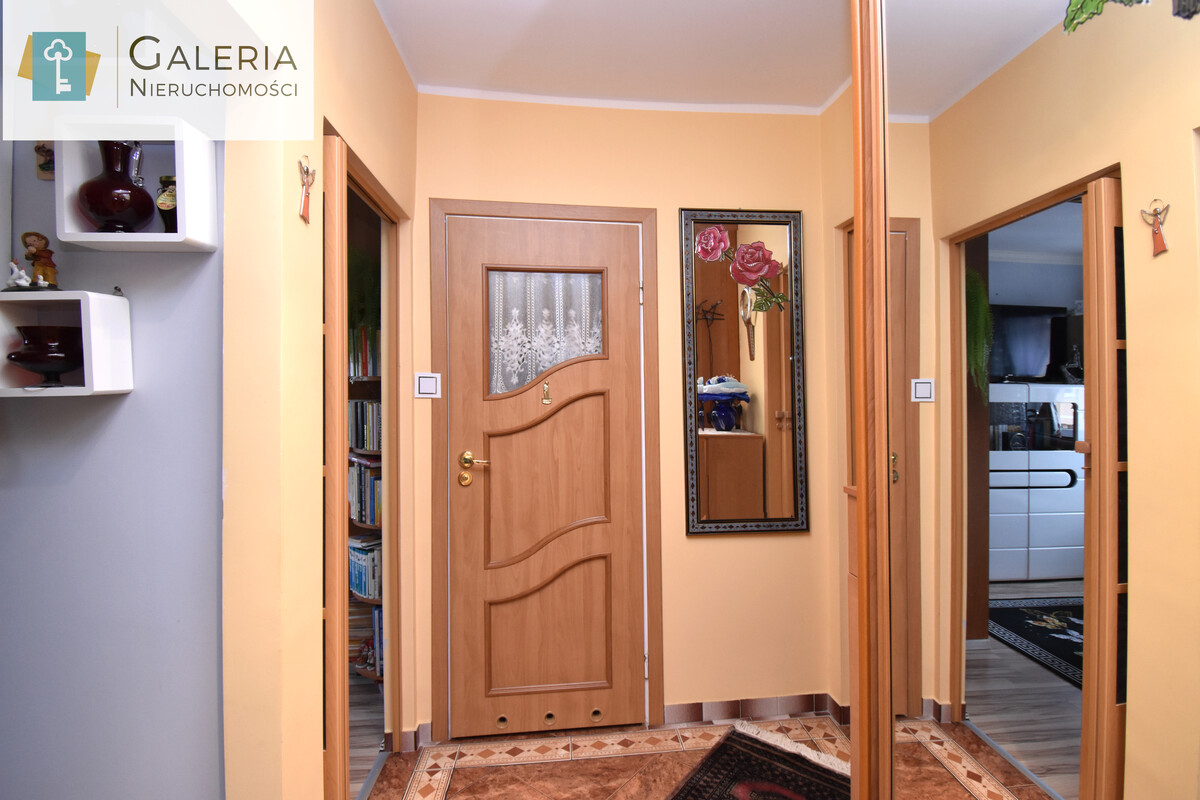 Wchodząc do nieruchomości znajdujemy się w przedpokoju w którym znajdziemy sporą szafę. Po lewej stronie mamy dużą i widną kuchnią.