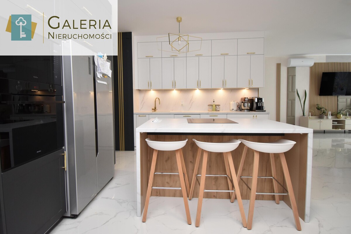 - jasna kuchnia z nowoczesną zabudową oraz dużą, funkcjonalną wyspą,
