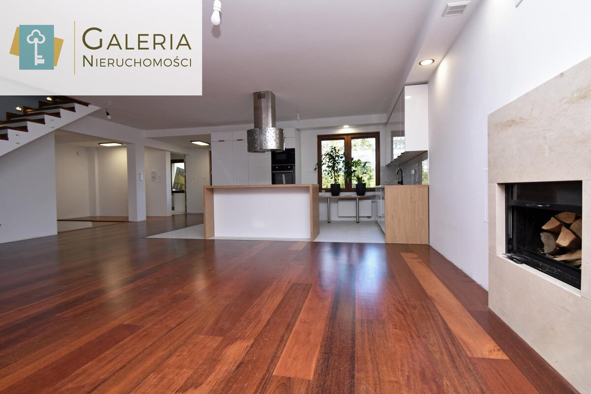 Kuchnia z wyspą, meble wykonane na zamówienie, a wszystkie niezbędne sprzęty są nowe. W salonie znajdziemy kominek z szybą podnoszoną do góry.