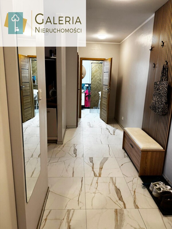 - przedpokoju z lustrem, wieszakiem na odzież wierzchnią oraz szafą.