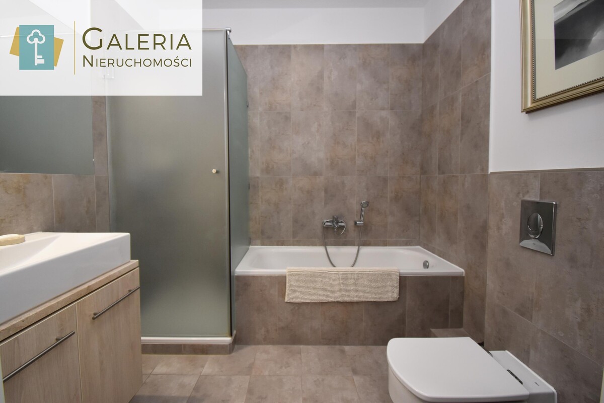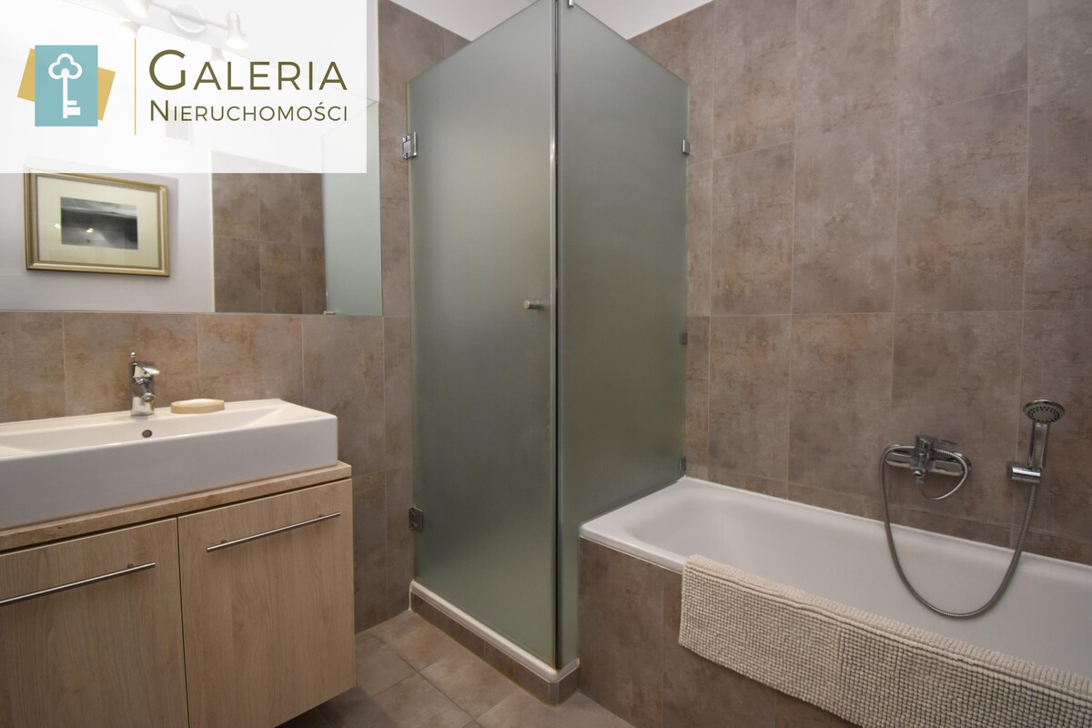 - elegancka łazienka z wanną i kabiną prysznicową idealna do długich kąpieli lub szybkiego prysznica po pracy