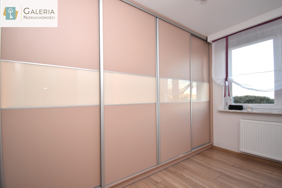 - Druga sypialnia / pokój - ciepłe i jasne pomieszczenie z dużą, prawie 4-metrową szafą w zabudowie, wyposażoną w oświetlenie LED. Mnóstwo miejsca do przechowywania! Pokój można zaaranżować jako sypialnię, gabinet, pokój dziecka lub garderobę.
