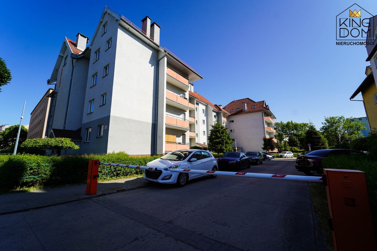 Wjazd na teren osiedla zabezpieczony szlabanem, przed budynkiem znajduje się parking dla mieszkańców. Teren wokół budynku starannie zagospodarowany.