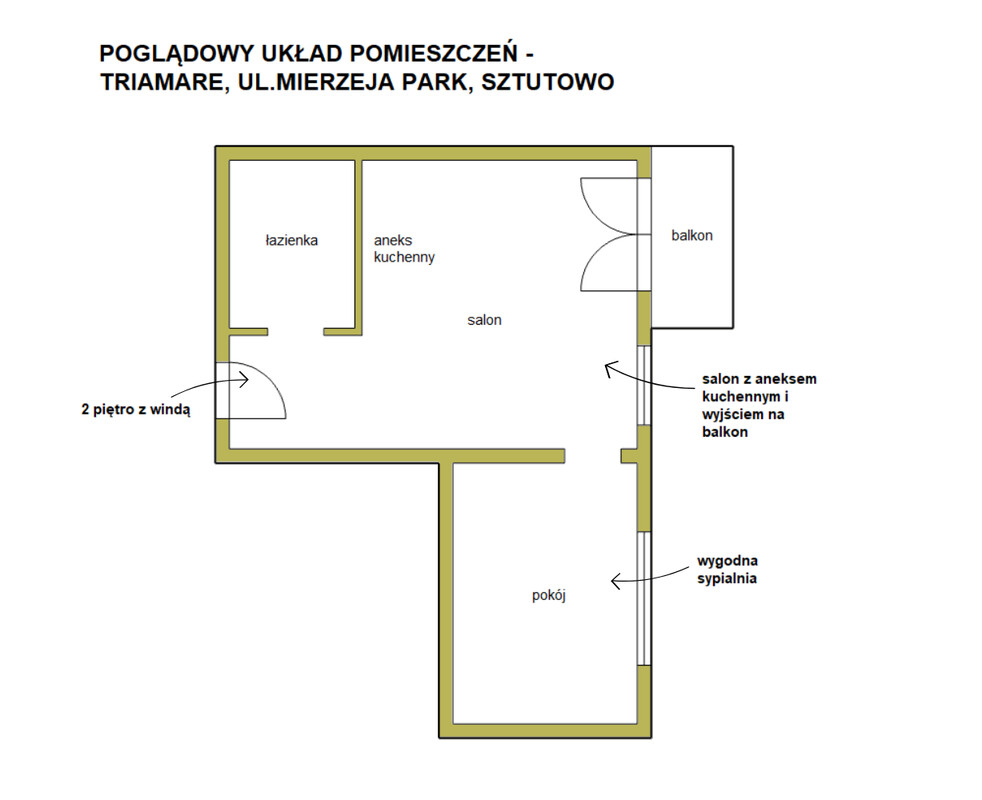 KINGDOM Elbląg Nieruchomości prezentuje na sprzedaż 2-pokojowy apartament w stanie deweloperskim, z balkonem i miejscem postojowym, położony w nowo powstałym, nowoczesnym kompleksie Trimare w Sztutowie.