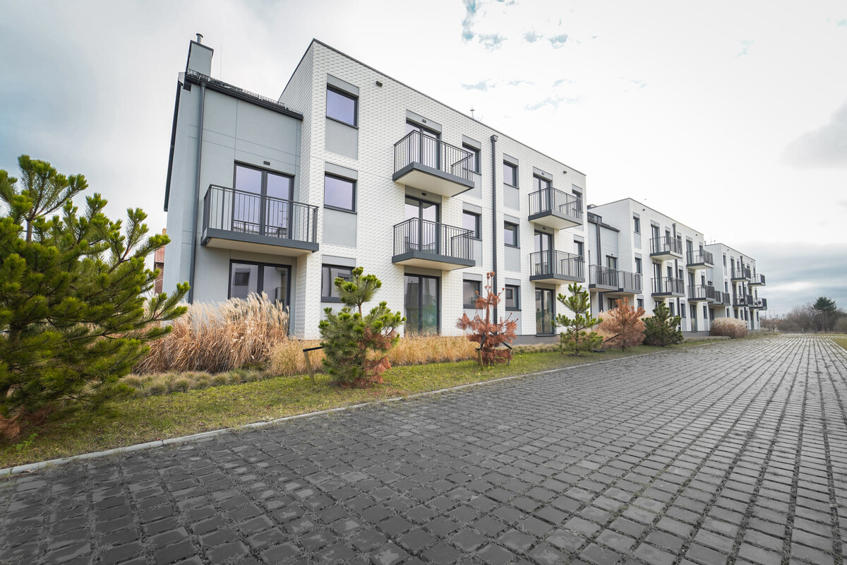 Prezentowany apartament znajduje się przy ulicy Mierzeja Park, w kompleksie Trimare, który obejmuje trzy kameralne budynki.