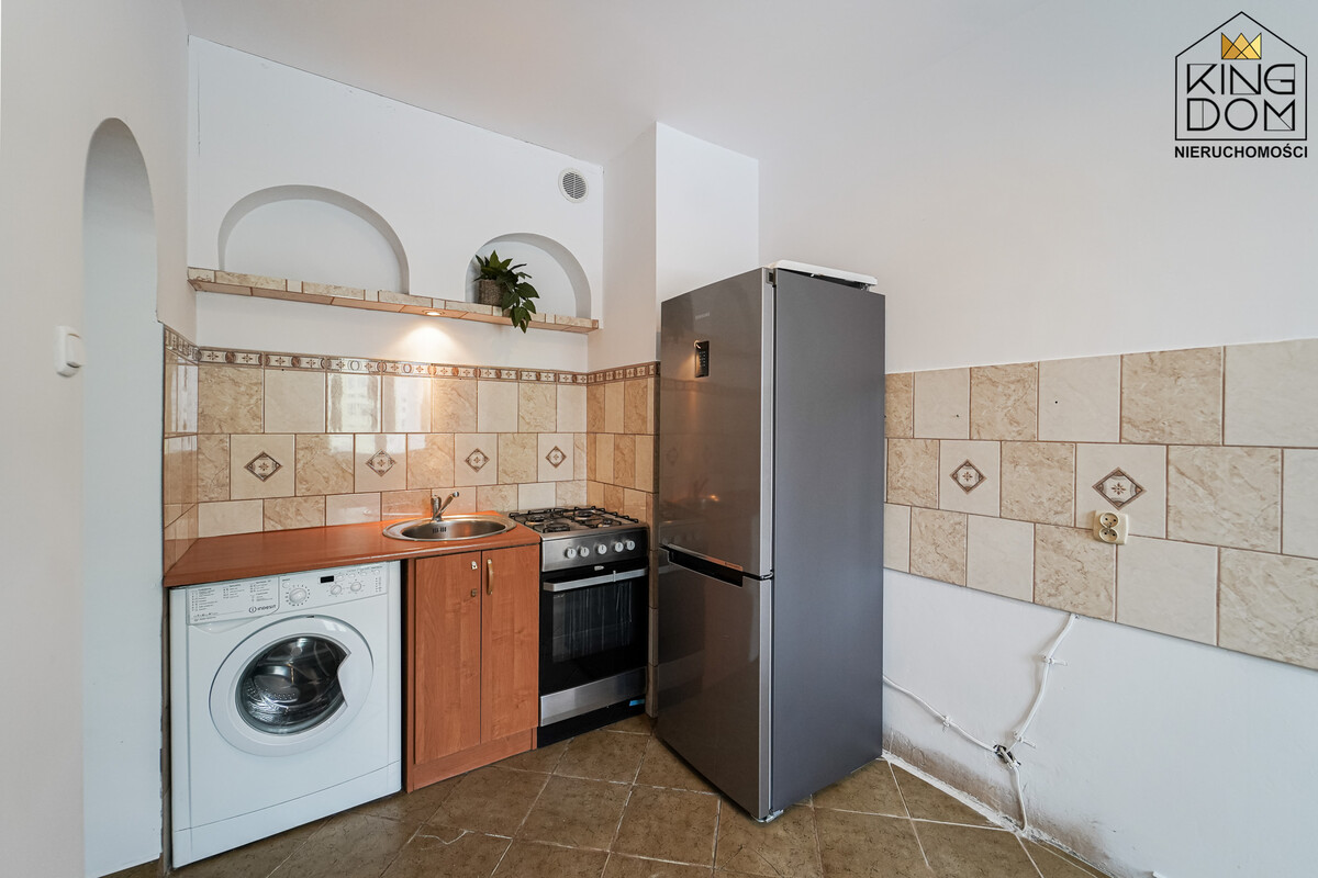 KINGDOM Nieruchomości prezentuje na sprzedaż atrakcyjną kawalerkę z możliwością przearanżowania na dwupokojowe mieszkanie. To idealna propozycja dla osób szukających mieszkania na start, par, singli, jak również jako pewna inwestycja pod wynajem.