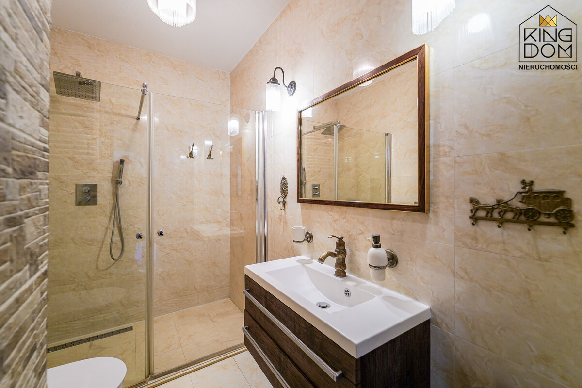 - łazienka z kabiną prysznicową, wc,