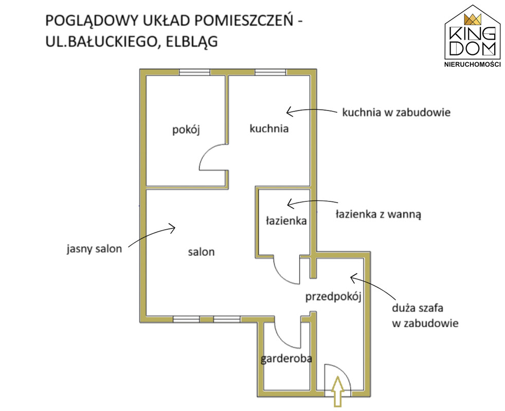 KINGDOM Nieruchomości prezentuje na sprzedaż jasne 2-pokojowe mieszkanie, gotowe do zamieszkania, zlokalizowane w dobrze rozwiniętej części miasta.